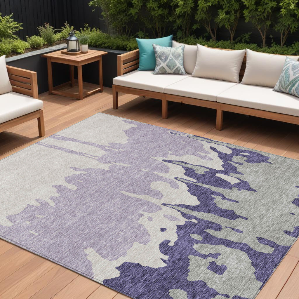 Set an inviting tone in your space with this 10-foot x 14-foot purple and ivory abstract washable indoor outdoor area rug. This rectangle shaped rug features a abstract design that will work well both indoors or out. A classic shape marries with good looking design for your living room, hall, bedroom, porch, patio, or poolside. Ideal for outdoor spaces or high traffic areas with kids and pets, this rug is made from heavy duty polyester that is stain resistant to help repel water, dirt, and stains. Makes a great way to dress up your patio, porch, or poolside, but also works well as a durable and easy to maintain option in the kitchen, family room, or mudroom. 120-inch h x 168-inch w x 0.19-inch d.