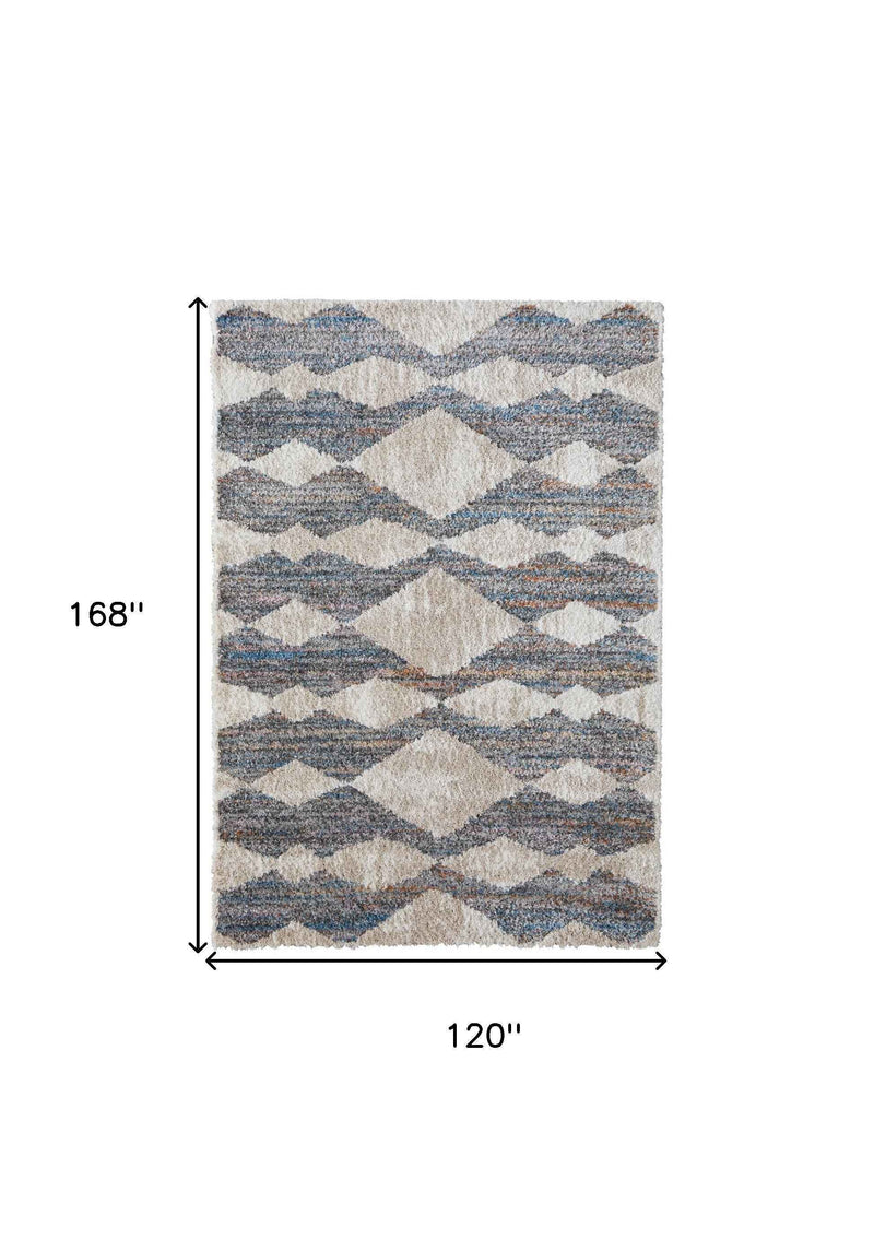 10' X 14' Tan Ivory And Blue Chevron Power Loom Stain Resistant Area Rug