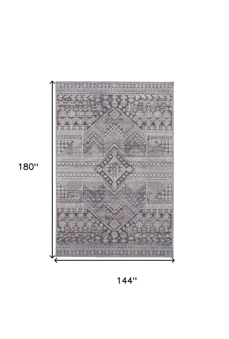 12' X 15' Ivory And Gray Geometric Power Loom Distressed Stain Resistant Area Rug