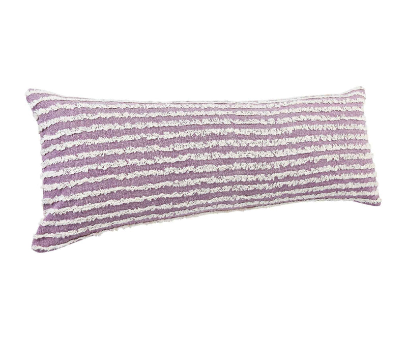 This 14" x 36" purple and cream 100% cotton striped zippered pillow will add a beautiful decorative accent to your decor. The purple and cream coloring of the soft and long lasting 100% cotton will add dimension and texture to your space. For anyone that loves to decorate or accent their space with color and texture. Decorative pillows are a great way to change up the look and feel of your space easily and quickly. 14" H x 14" W x 36" D