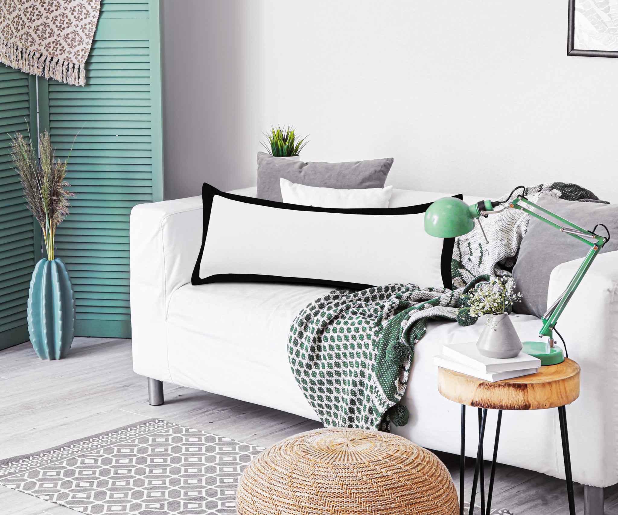 14" X 36" White And Black 100% Cotton Geometric Zippered Pillow - Bỏ qua nội dung