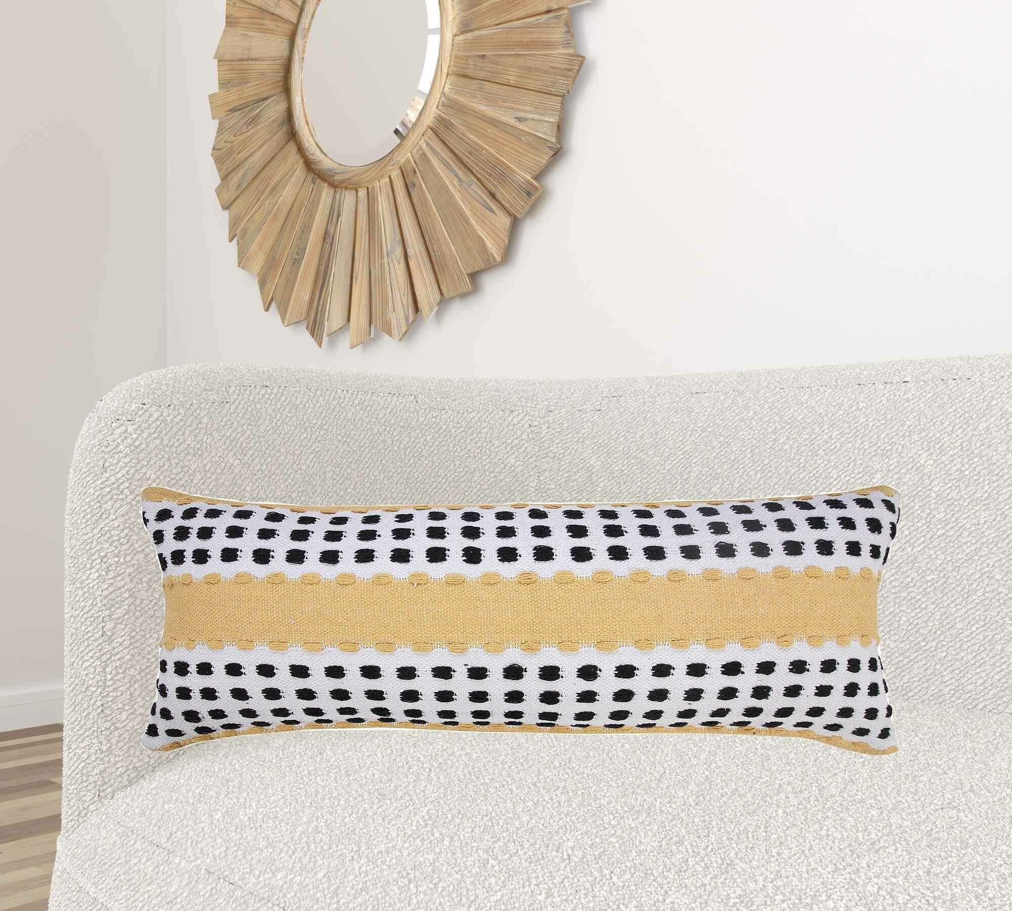 14" X 36" Yellow Black And White 100% Cotton Striped Zippered Pillow