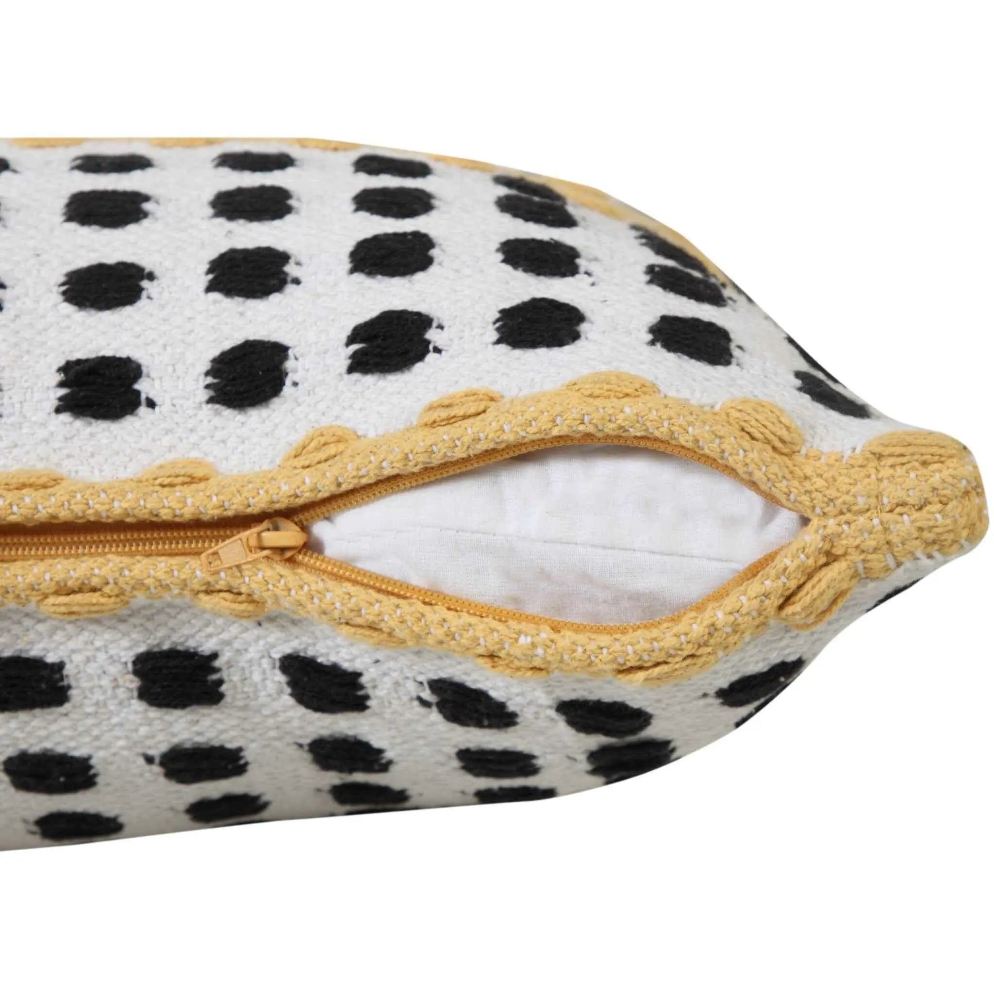 Bring a bit of fashion and zip to your space with this eye-catching and comfy 14" x 36" yellow black and white 100% cotton striped zippered pillow. This super soft decorative pillow is expertly made of high grade, long lasting 100% cotton in a yellow black and white coloration. For anyone that loves to decorate or accent their space with color and texture. Decorative pillows are a great way to change up the look and feel of your space easily and quickly. 14" H x 14" W x 36" D