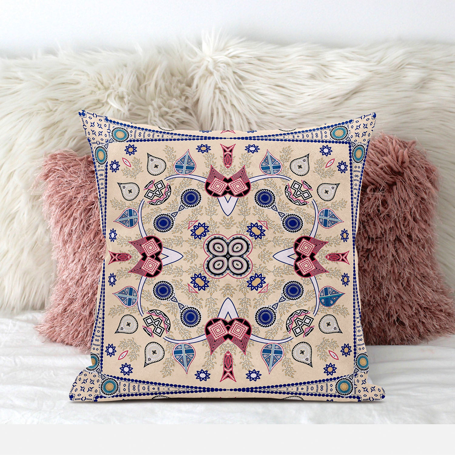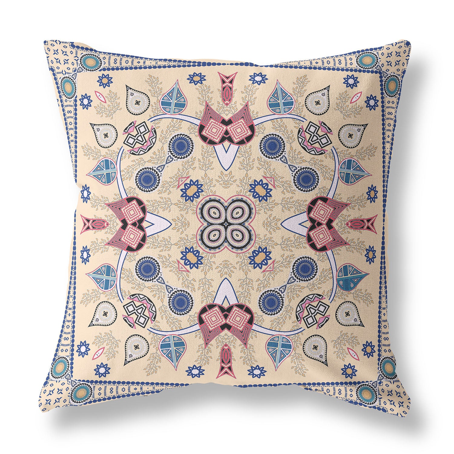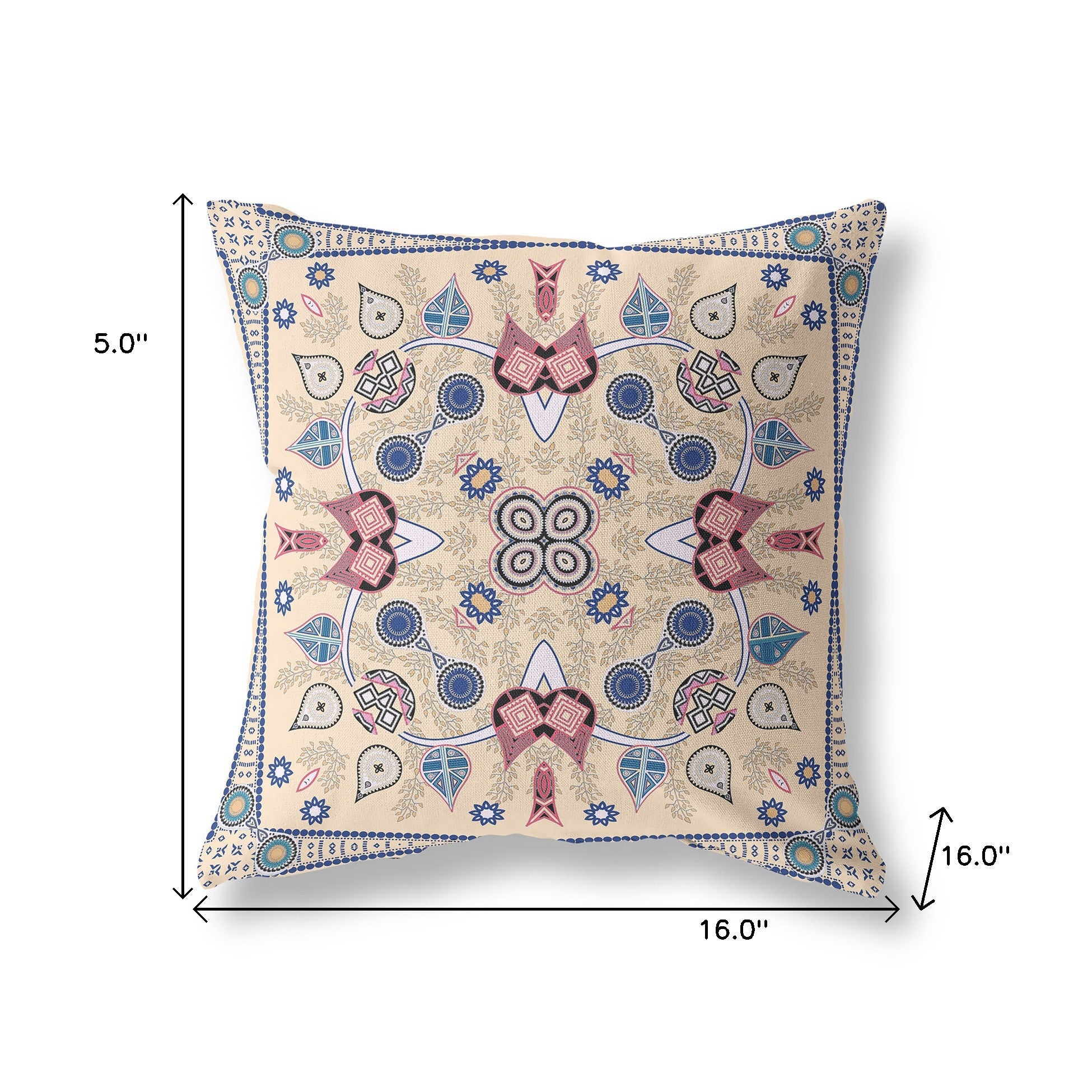 16" x 16" Beige Blown Seam Paisley Indoor Outdoor Throw Pillow