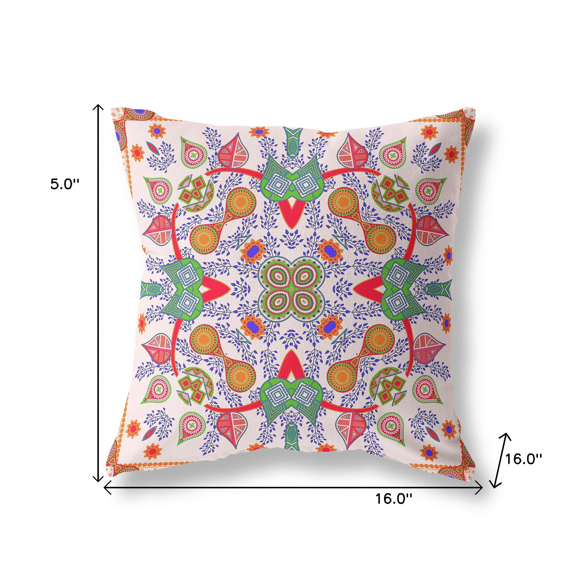 16" X 16" White And Orange Blown Seam Floral Indoor Outdoor Throw Pillow