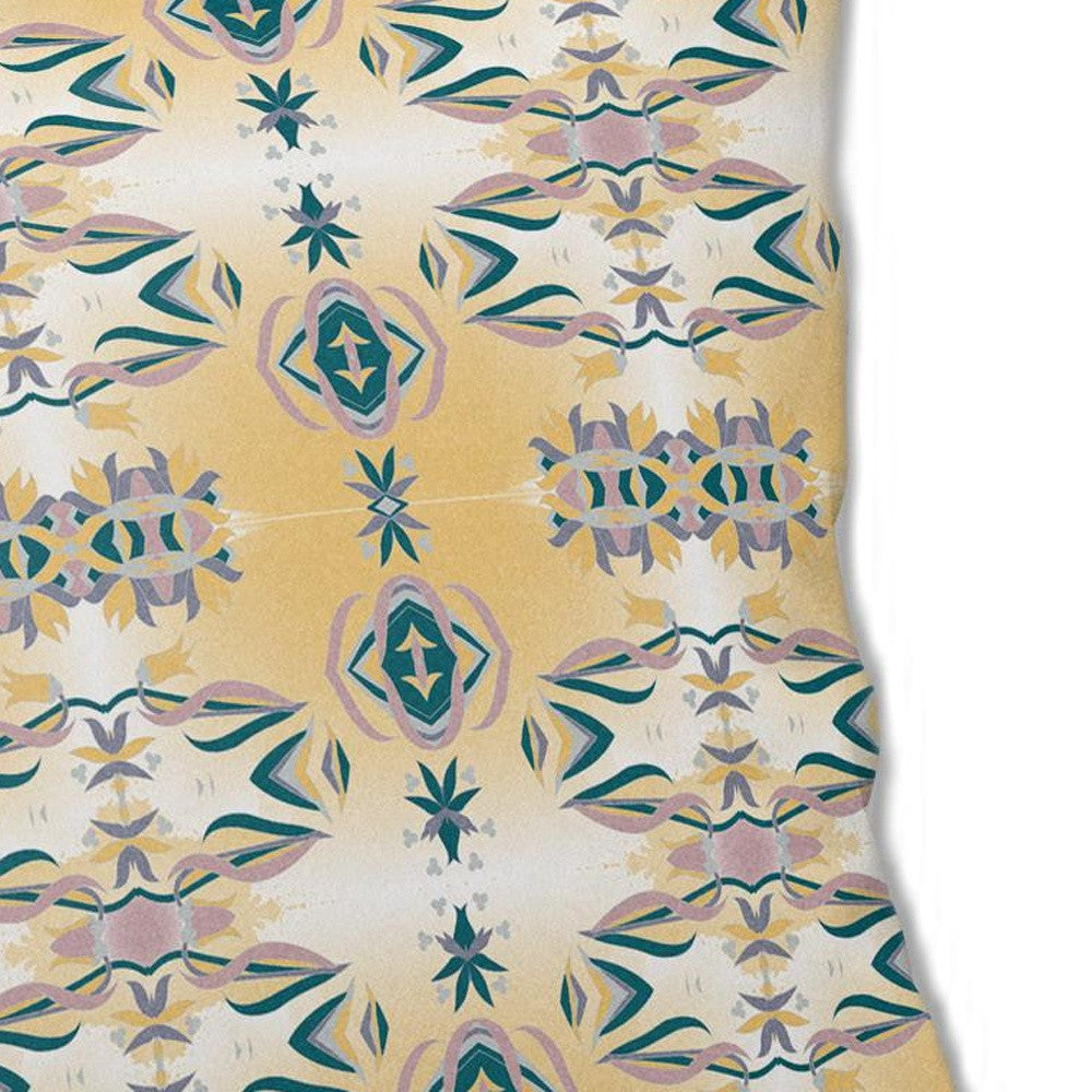 Bring a bit of fashion and zip to your space with this eye-catching and comfy 18" x 18" white and yellow abstract blown seam suede throw pillow. Great to use on its own or mix with other decorations for the perfect look. Decorative pillows are a great way to change up the look and feel of your space easily and quickly. 5" H x 18" W x 18" D
