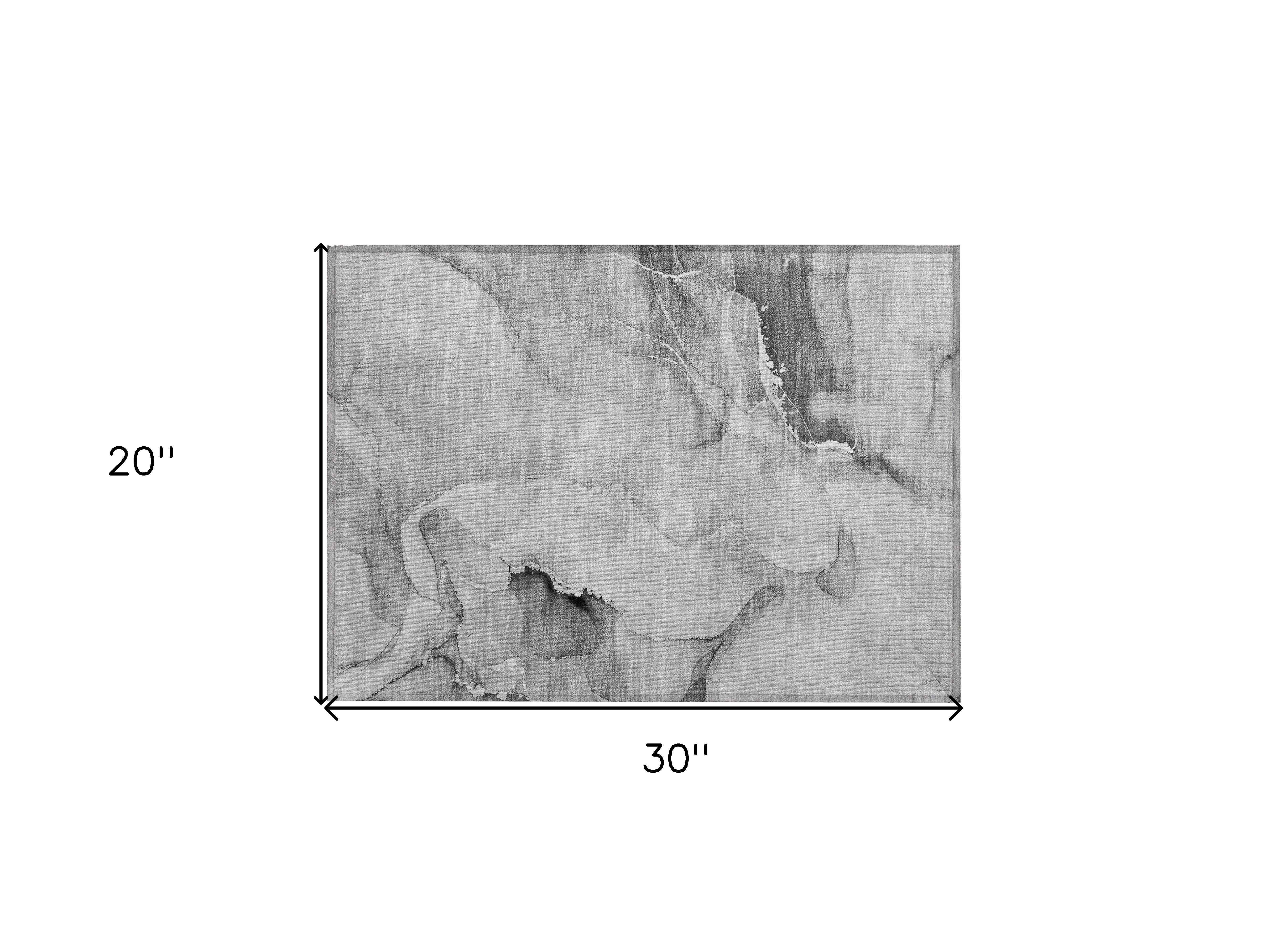 2' X 3' Gray and Ivory Abstract Washable Non Skid Indoor Outdoor Area Rug