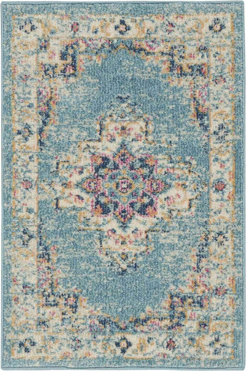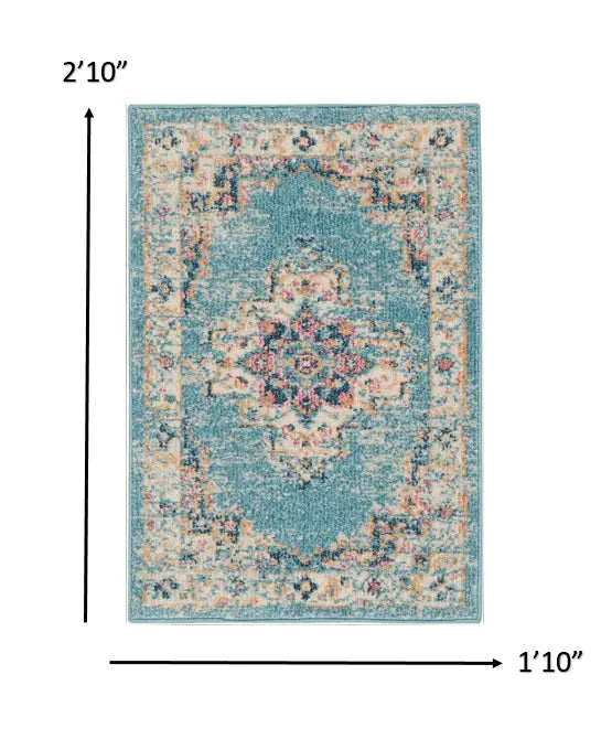 2' X 3' Light Blue Southwestern Power Loom Area Rug