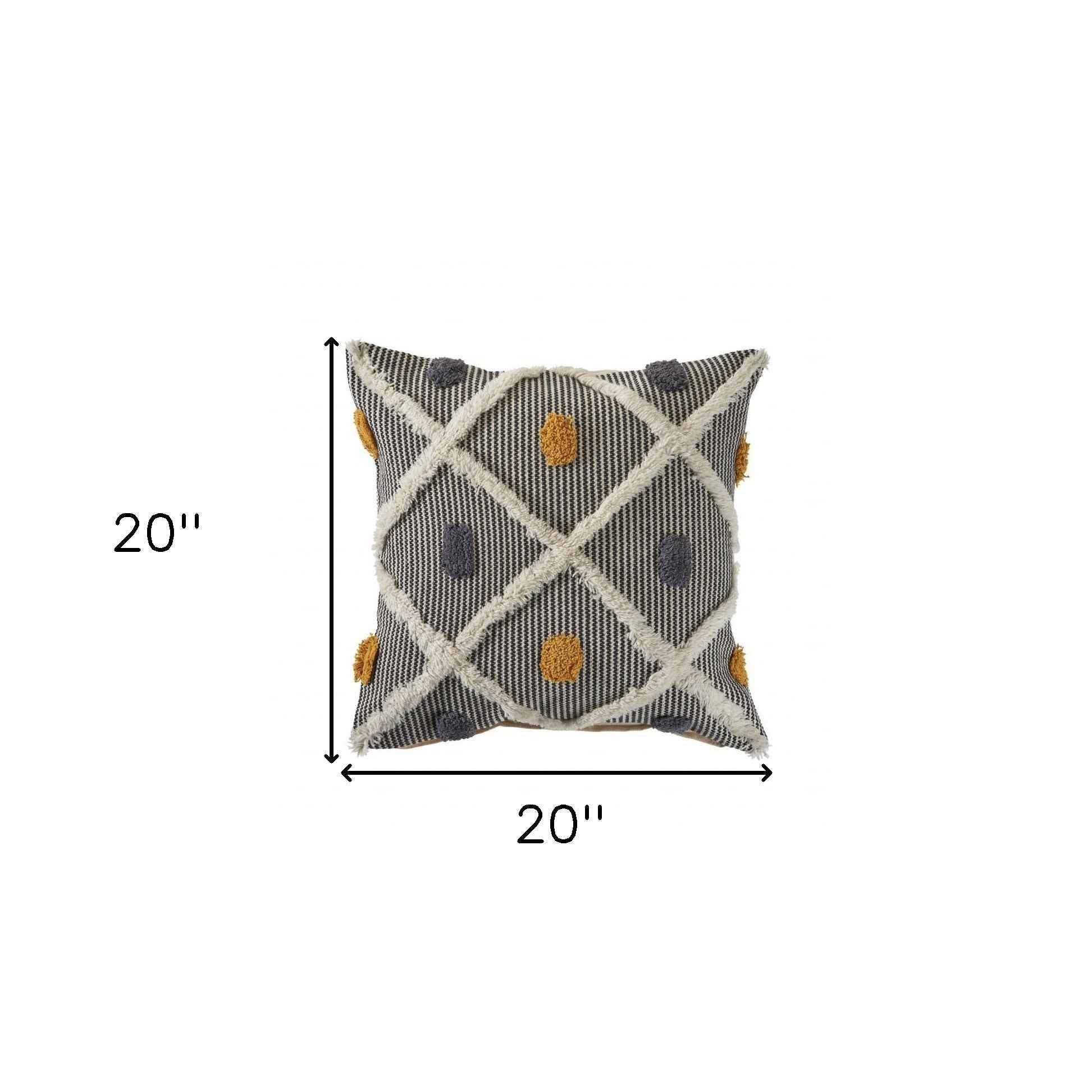 20" X 20" Black Gray Yellow And Off-White 100% Cotton Geometric Zippered Pillow