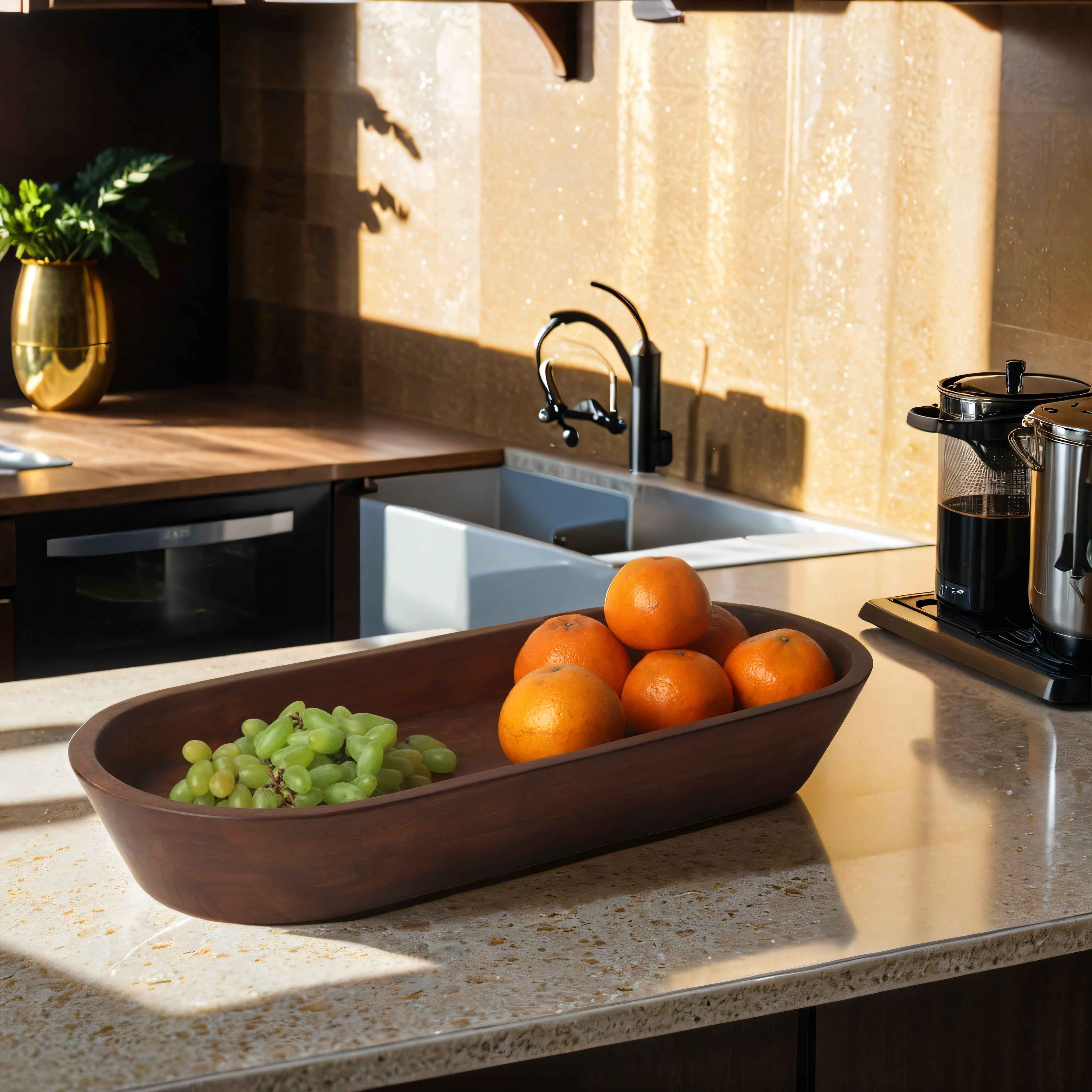 Add some vintage style to your kitchen, dining room, living room or office with this Dark Brown Acacia Wood Oval Dough Bowl. This handmade bowl is carved from solid acacia wood and creates the perfect artisanal accent to add some rustic charm to your space. While in itself this piece is a work of art, it also is a great serve bowl or centerpiece bowl to showcase candles, spheres, potpourri, or other fillers. 3-inch H x 22-inch W x 10-inch D