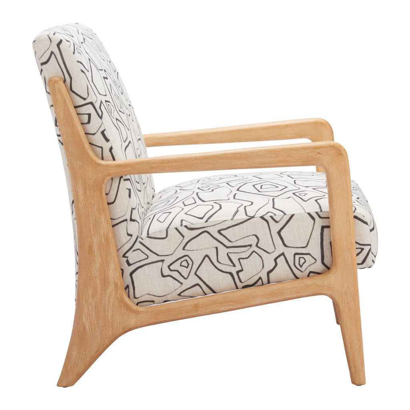 27" Beige and Natural Upholstered Geometric Arm Chair