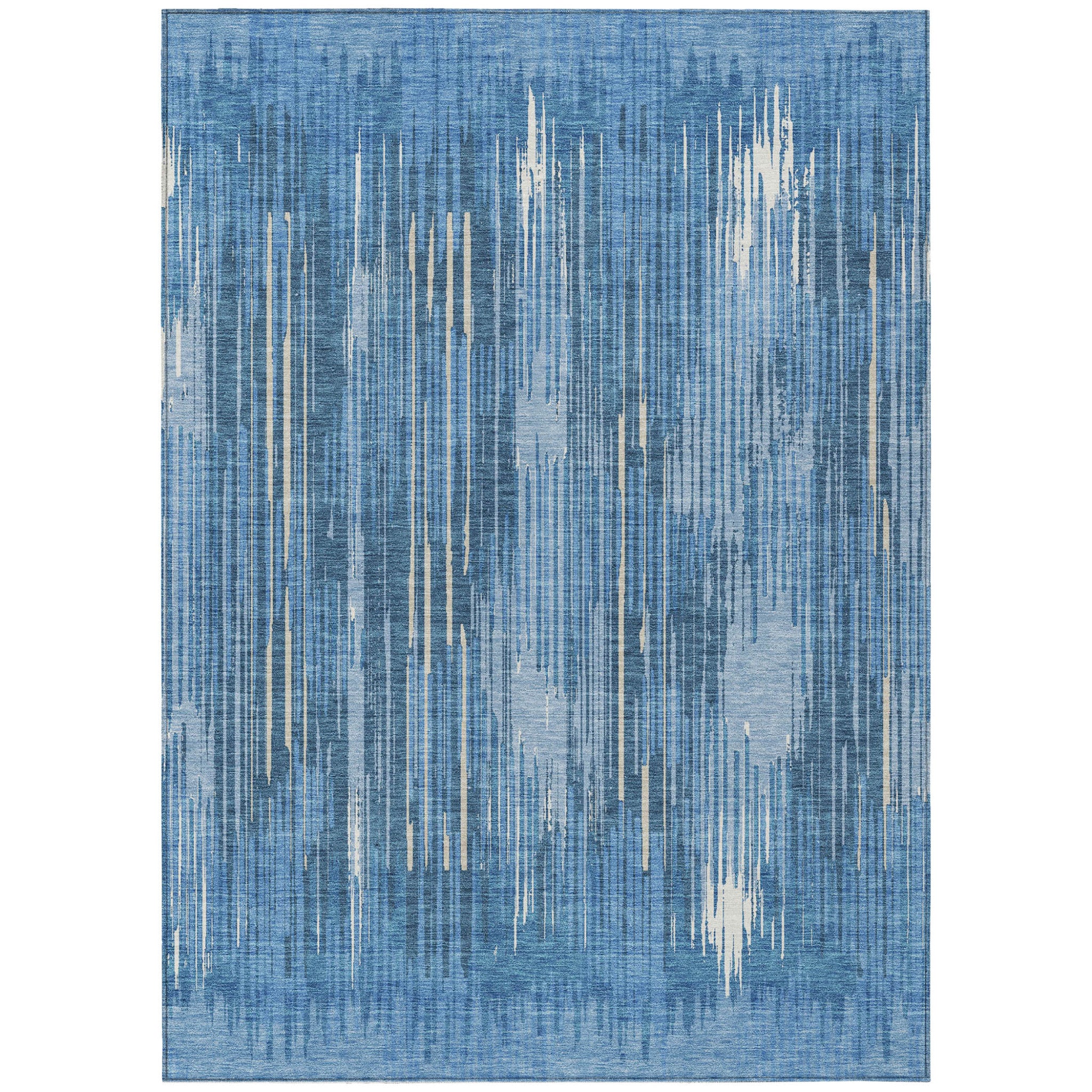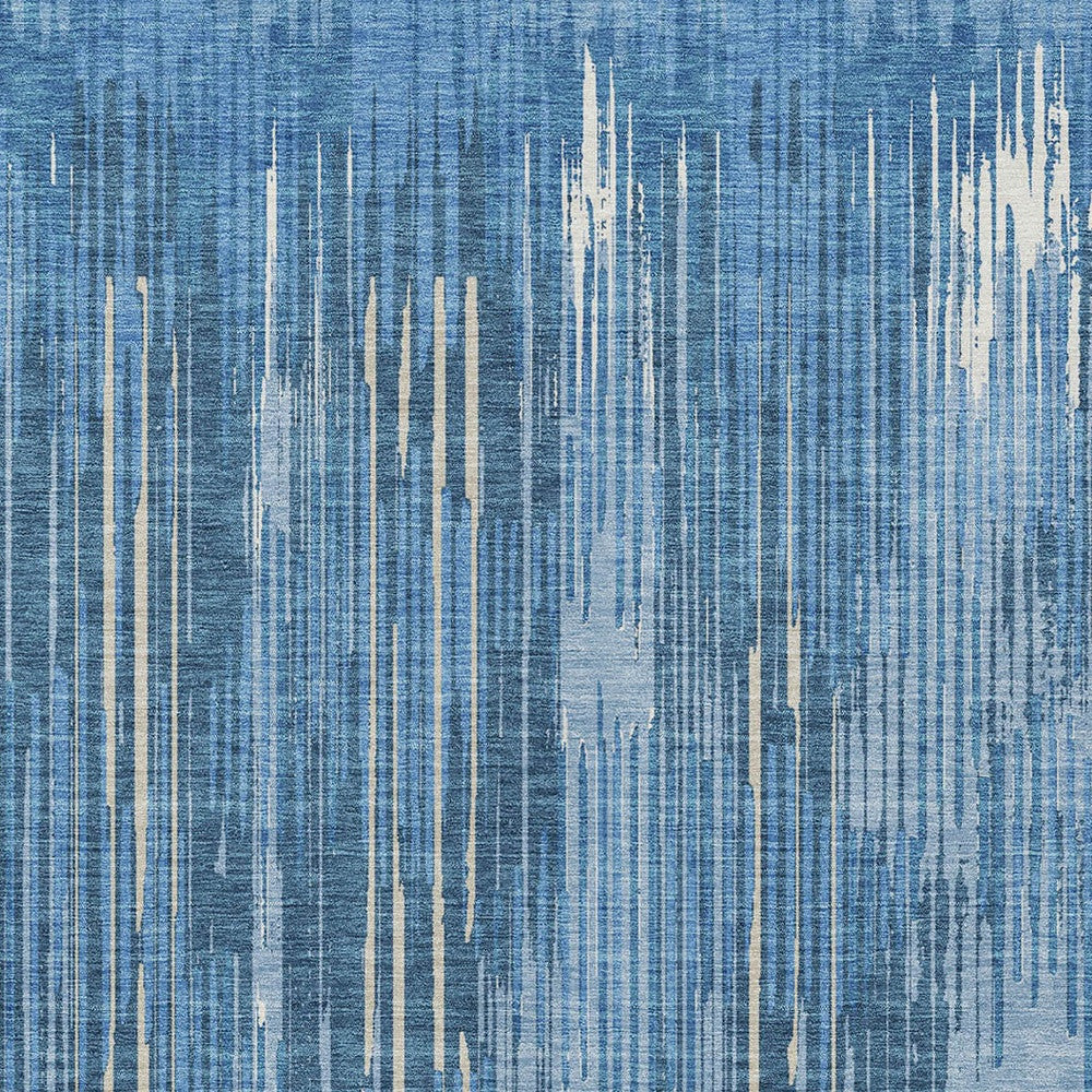 3' X 5' Blue And Ivory Striped Washable Indoor Outdoor Area Rug