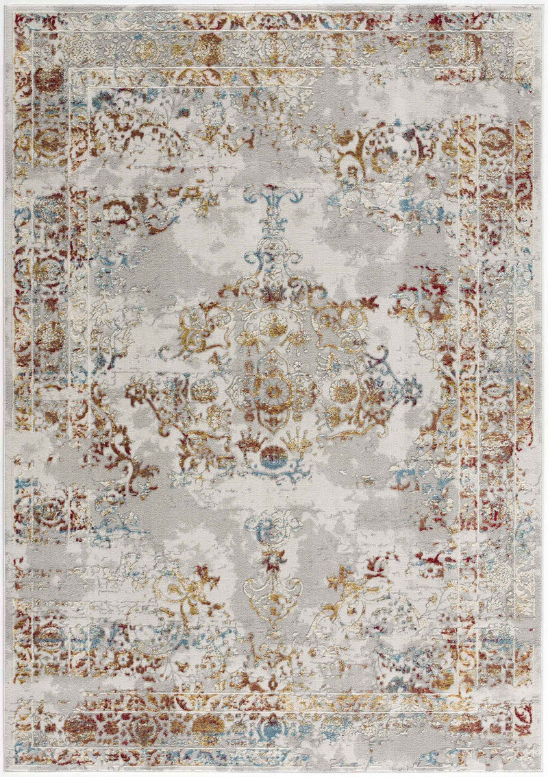 3’ X 5’ Gray And Beige Distressed Ornate Area Rug