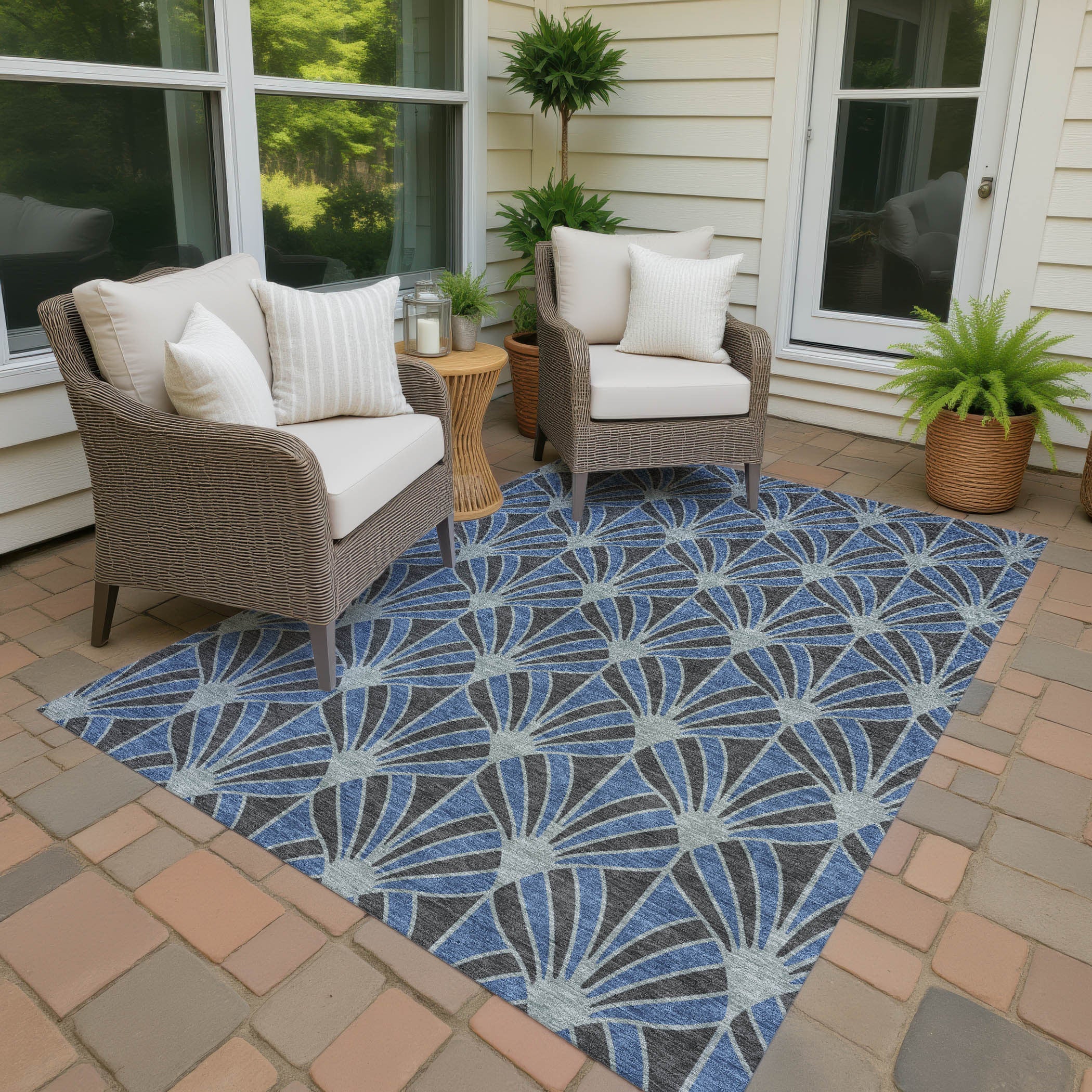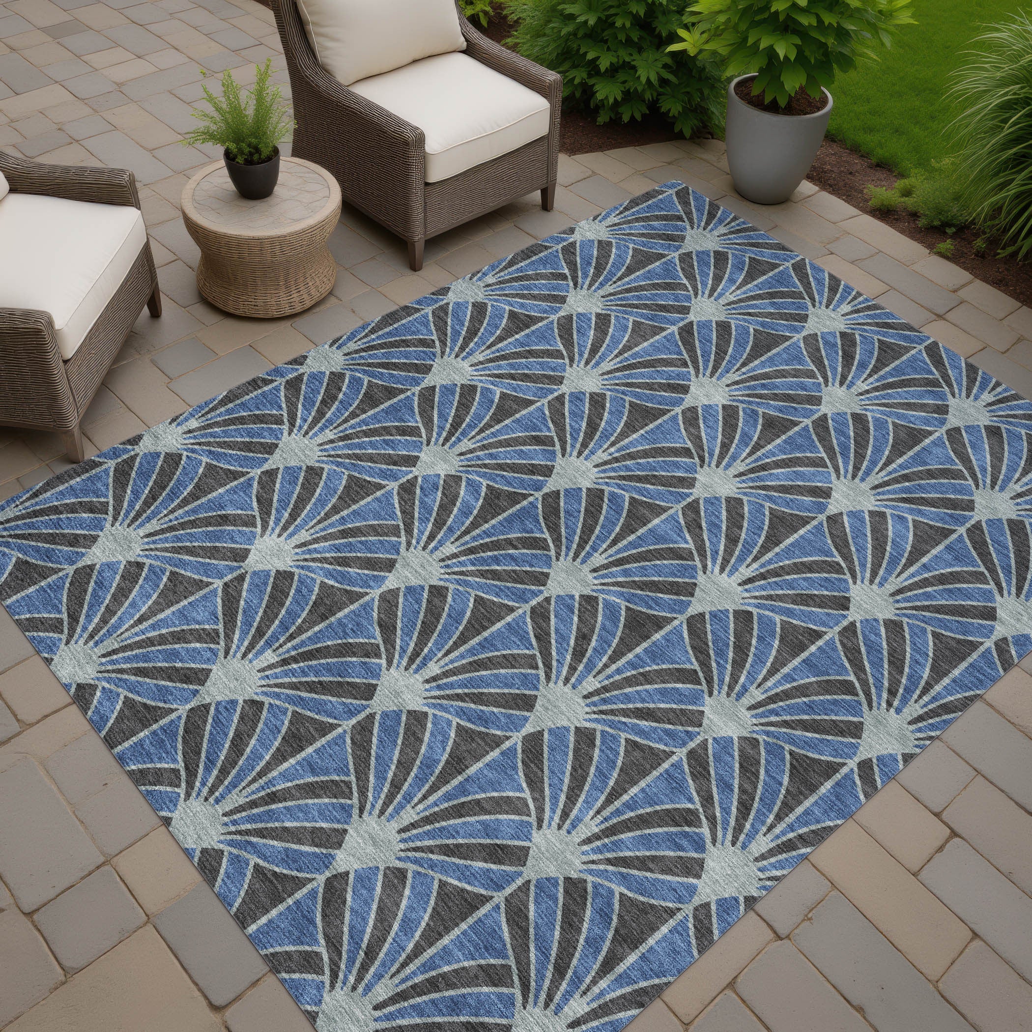 Add some artistry to your room with this 3-foot x 5-foot navy blue and charcoal seashell washable indoor outdoor area rug. This rectangle shaped rug features a seashell design that will work well both indoors or out. A classic shape marries with good looking design for your living room, hall, bedroom, porch, patio, or poolside. Ideal for outdoor spaces or high traffic areas with kids and pets, this rug is made from heavy duty polyester that is stain resistant to help repel water, dirt, and stains. Makes a great way to dress up your patio, porch, or poolside, but also works well as a durable and easy to maintain option in the kitchen, family room, or mudroom. 36.00-inch h x 60.00-inch w x 0.19-inch d.