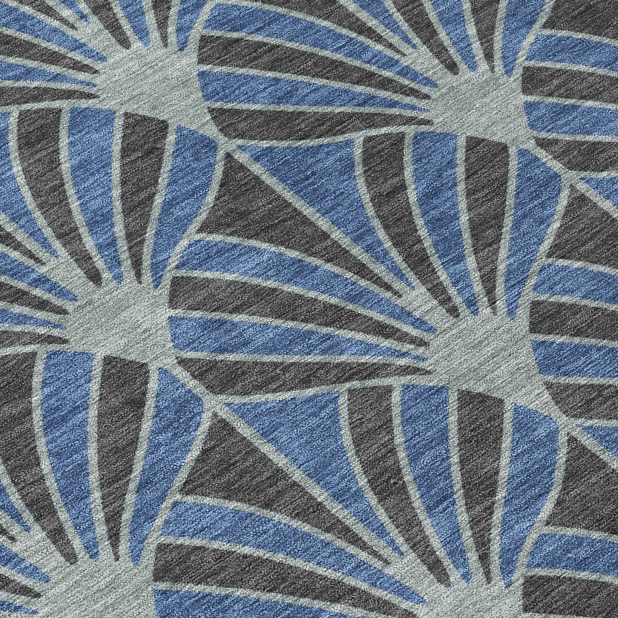 3' X 5' Navy Blue And Charcoal Seashell Washable Indoor Outdoor Area Rug