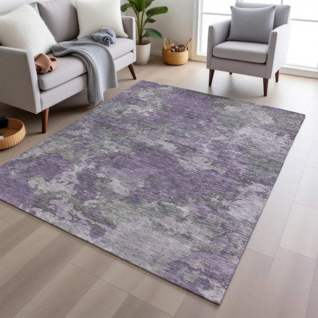 3' X 5' Purple And Gray Abstract Washable Indoor Outdoor Area Rug