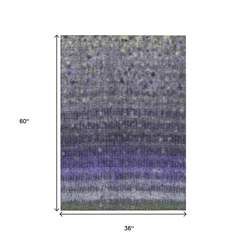 3' X 5' Purple And Gray Striped Washable Indoor Outdoor Area Rug