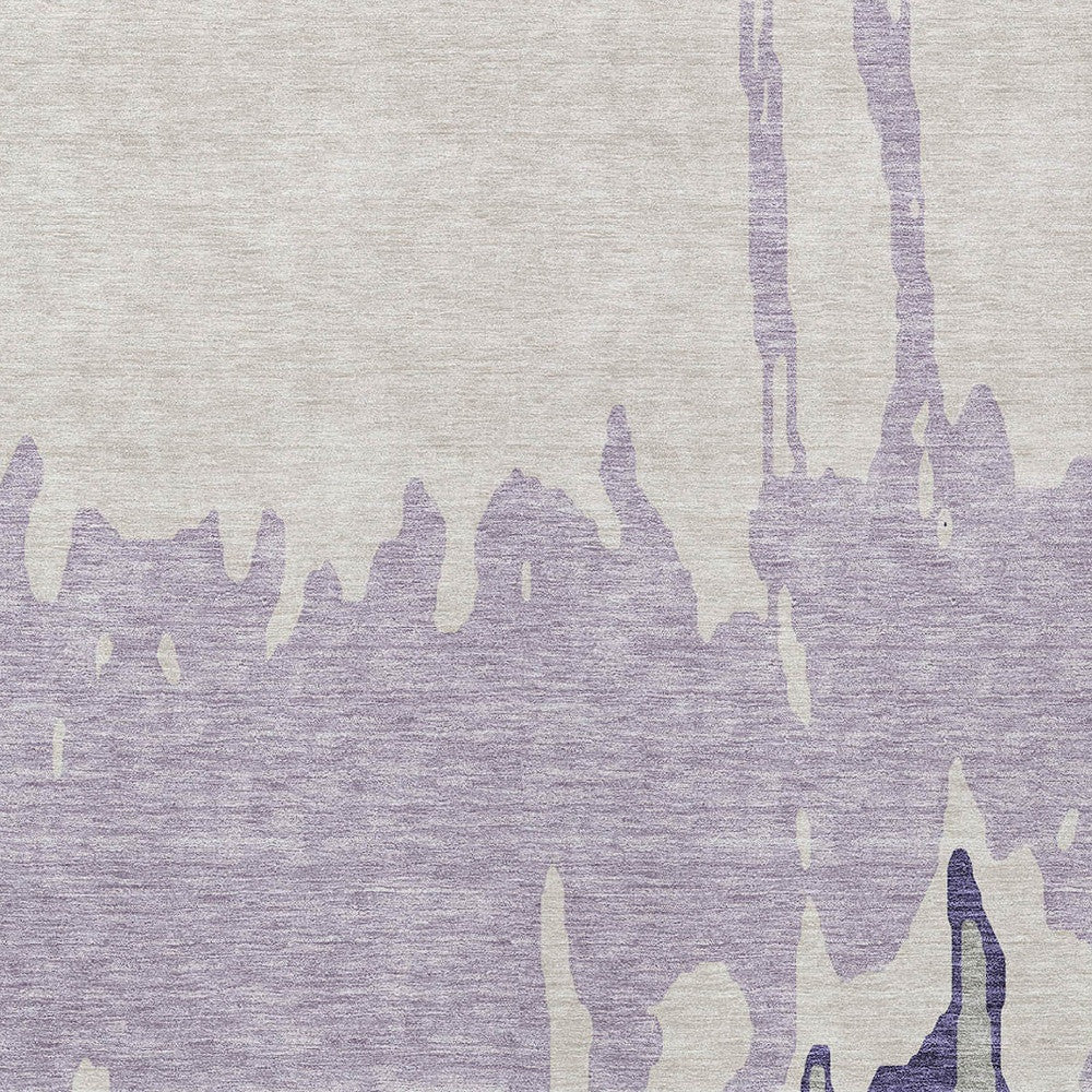 3' X 5' Purple And Ivory Abstract Washable Indoor Outdoor Area Rug
