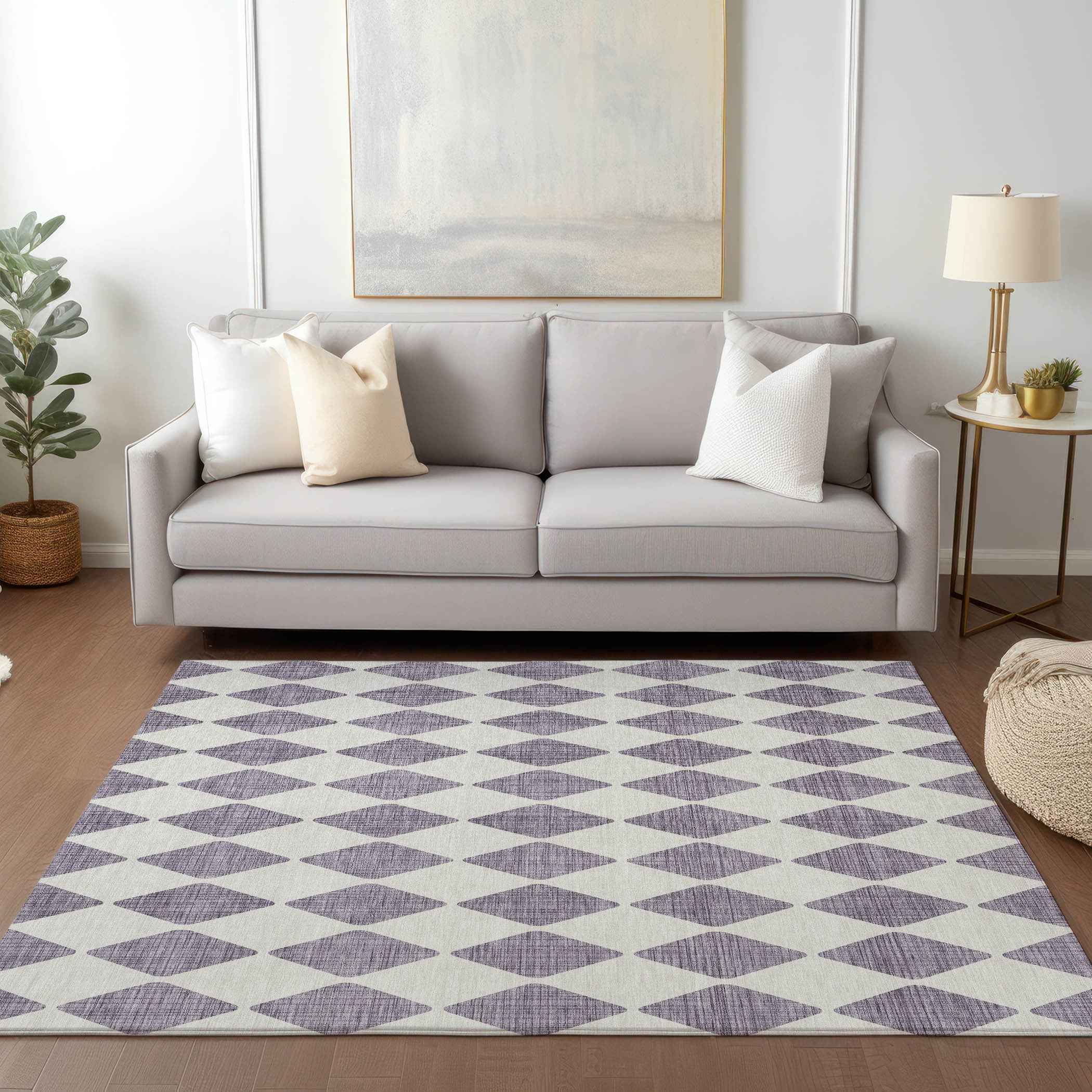 Add some artistry to your room with this 3-foot x 5-foot purple and lilac geometric washable indoor outdoor area rug. This rectangle shaped rug features a geometric design that will work well both indoors or out. A classic shape marries with good looking design for your living room, hall, bedroom, porch, patio, or poolside. Ideal for outdoor spaces or high traffic areas with kids and pets, this rug is made from heavy duty polyester that is stain resistant to help repel water, dirt, and stains. Versatile in use, durable, and easy to maintain, this rug is an ideal solution to add a decorative and inviting touch to your indoor or outdoor space. 36-inch h x 60-inch w x 0.19-inch d.