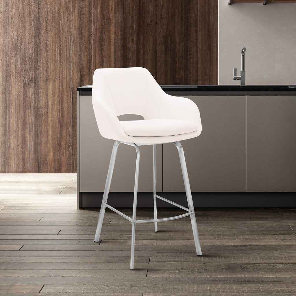 30" White And Silver Iron Swivel Low Back Bar Height Bar Chair