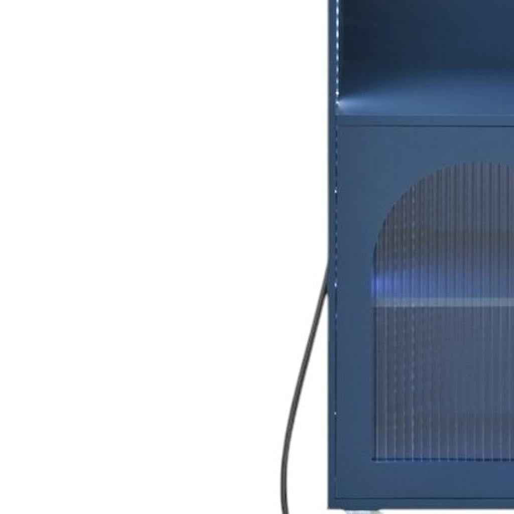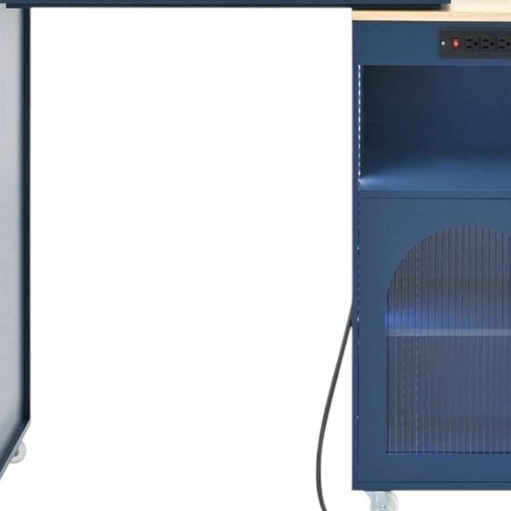 33" Navy Blue Wood Rolling Kitchen Island With Storage