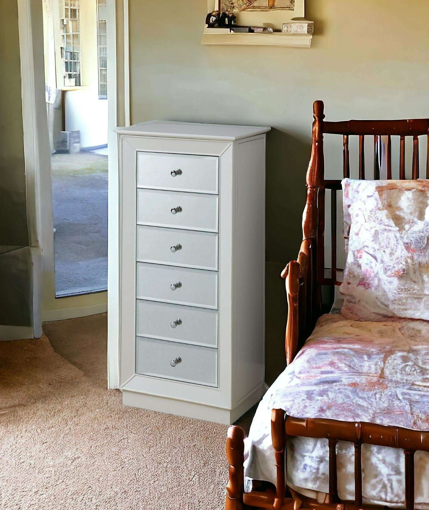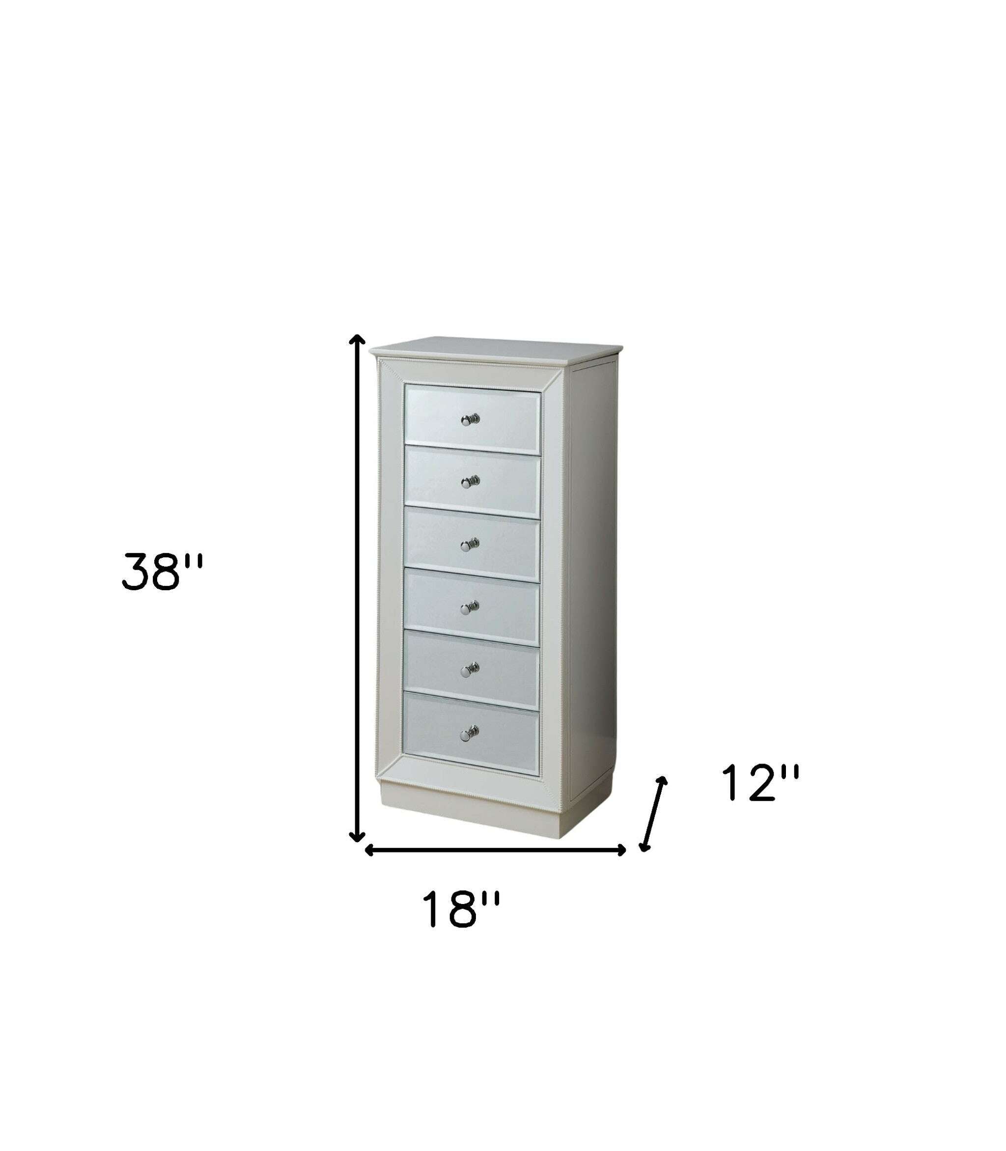 38" White Six Drawer Wood and Mirrored Glass Jewelry Armoire