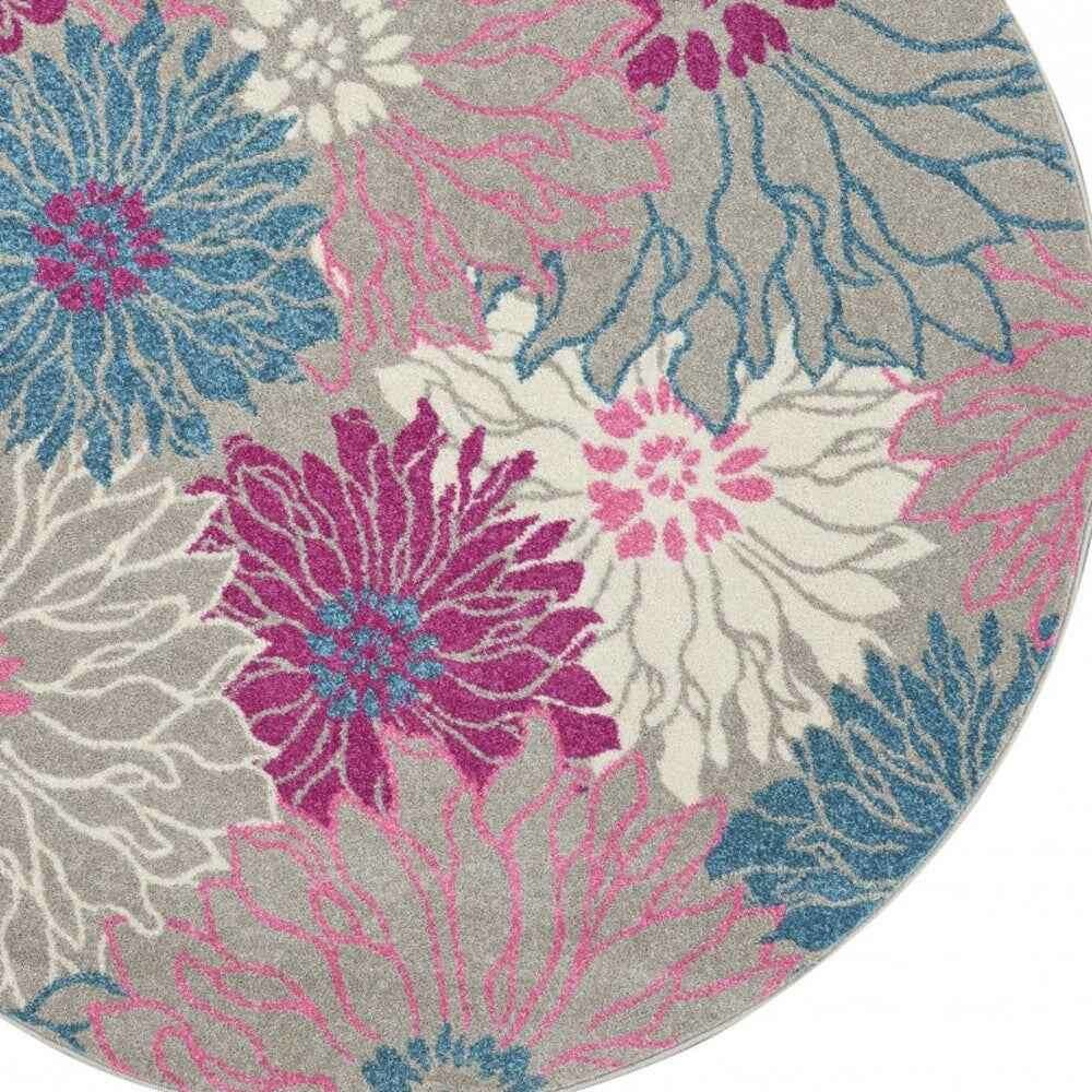 4' Gray Round Floral Dhurrie Area Rug