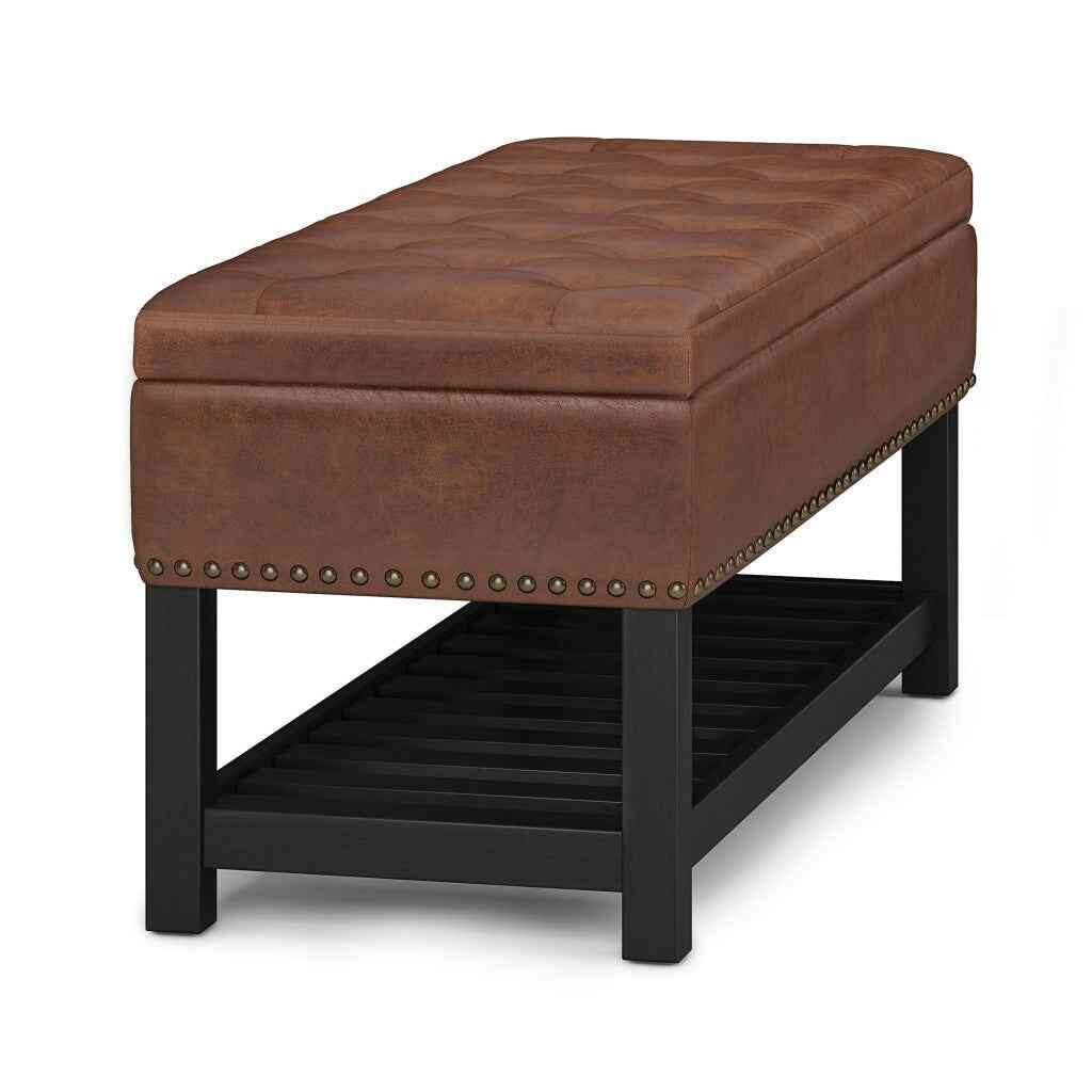 44" Brown and Espresso Leather Ottoman With Storage