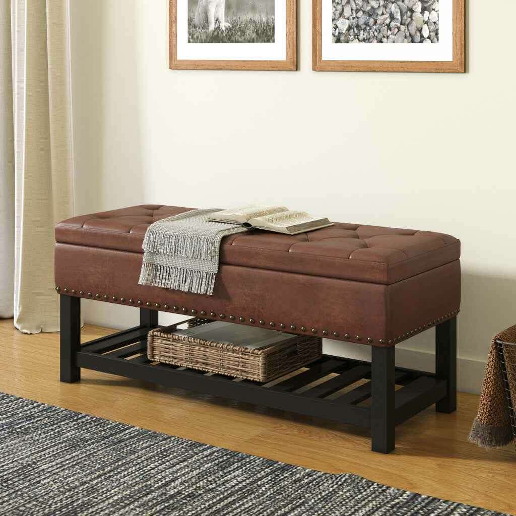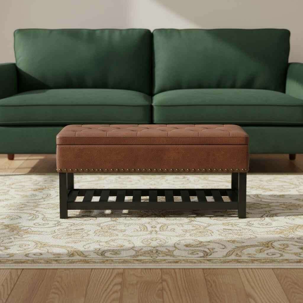 44" Brown and Espresso Leather Ottoman With Storage Bỏ qua nội dung