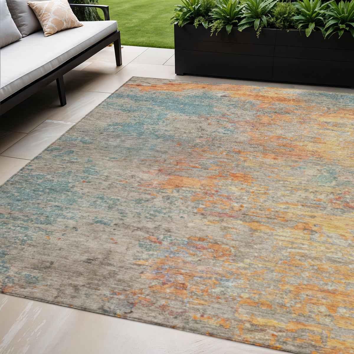 5' X 8' Teal Blue Abstract Washable Indoor Outdoor Area Rug