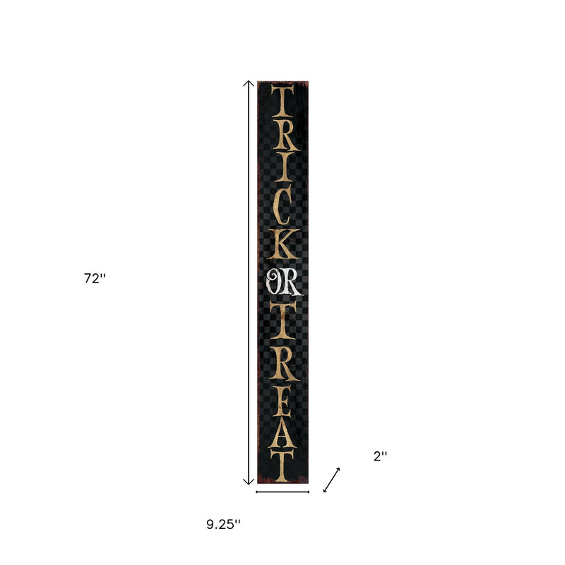 72" Black And Gold Solid Wood Trick or Treat Halloween Porch Sign