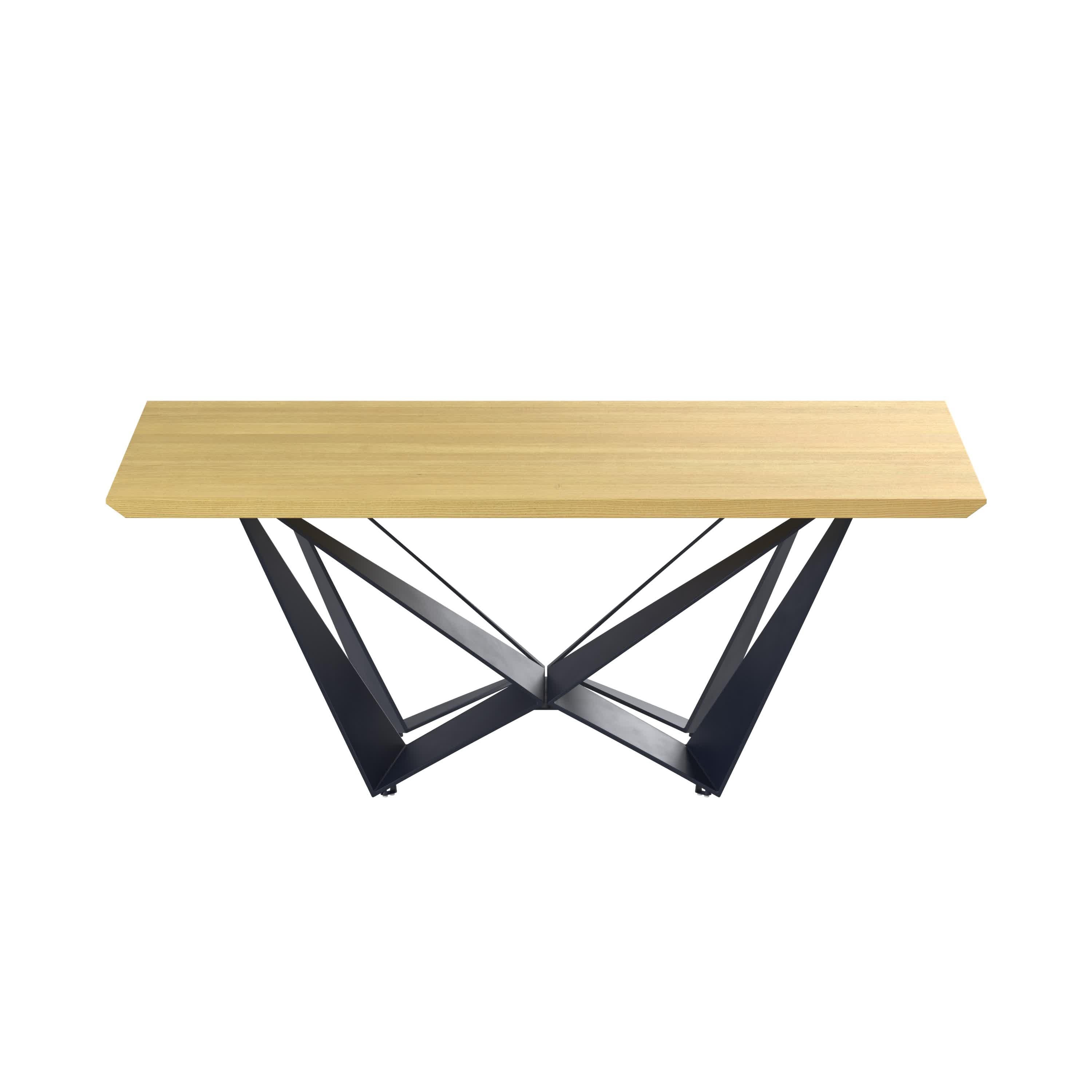 This good looking 79-inch natural and black wood and metal trestle base dining table is sure to inspire compliments. The black coloration of the high quality metal base marries nicely with the natural manufactured wood top surface. The two-tone finish gives it a fresh and updated look. A shiny and sheer gloss finish gives this table a bit of a modern and contemporary vibe. A beautiful trestle base adds some dimension and elegance to your dining. This dining table seats 6 people comfortably. This table is the sturdy, reliable and stylish answer to your dining room needs. This eye-catching dining table is ready for you to enjoy breakfast for one or entertain your guests. 29.5-inch h x 79-inch w x 39.5-inch d.