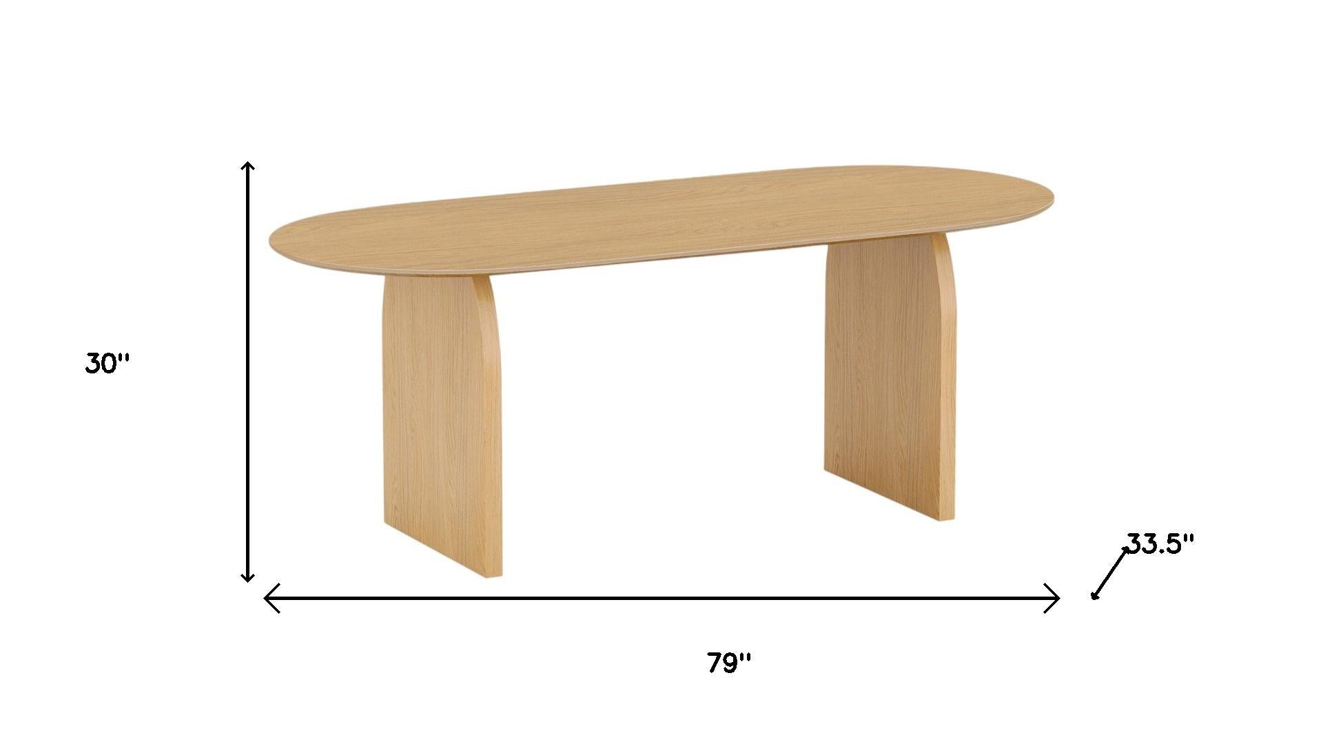 Make a statement with the 79-inch natural solid wood mirrored double pedestal base oval dining table and infuse a dash of character and personality into your space. This table features quality construction from solid wood and a sleek monotone color scheme with natural as the main color on both the top and the base. This table features a double pedestal base that adds some depth and interest to your space. Complete your kitchen or dining room with this well made and stylish table. This eye-catching dining table is ready for you to enjoy breakfast for one or entertain your guests. 30.00-inch h x 79.00-inch w x 33.50-inch d.
