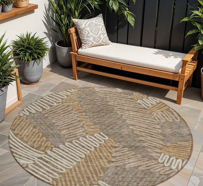 Set an inviting tone in your space with this 8-foot brown and ivory round floral washable indoor outdoor area rug. This geometric round shaped rug features a floral pattern in brown and ivory that combines a good looking print with a unique and updated shape. The mix of shape, color, and design gives this rug refreshing visual interest. Ideal for outdoor spaces or high traffic areas with kids and pets, this rug is made from heavy duty polyester that is stain resistant to help repel water, dirt, and stains. Versatile in use, durable, and easy to maintain, this rug is an ideal solution to add a decorative and inviting touch to your indoor or outdoor space. 96-inch h x 96-inch w x 0.19-inch d.