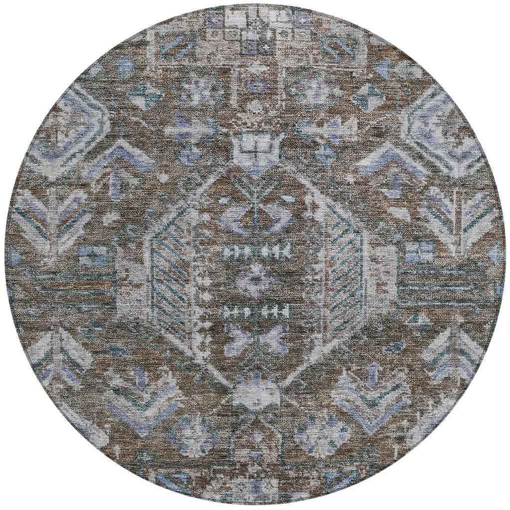 8' Chocolate And Denim Blue Round Medallion Washable Indoor Outdoor Bỏ qua nội dung