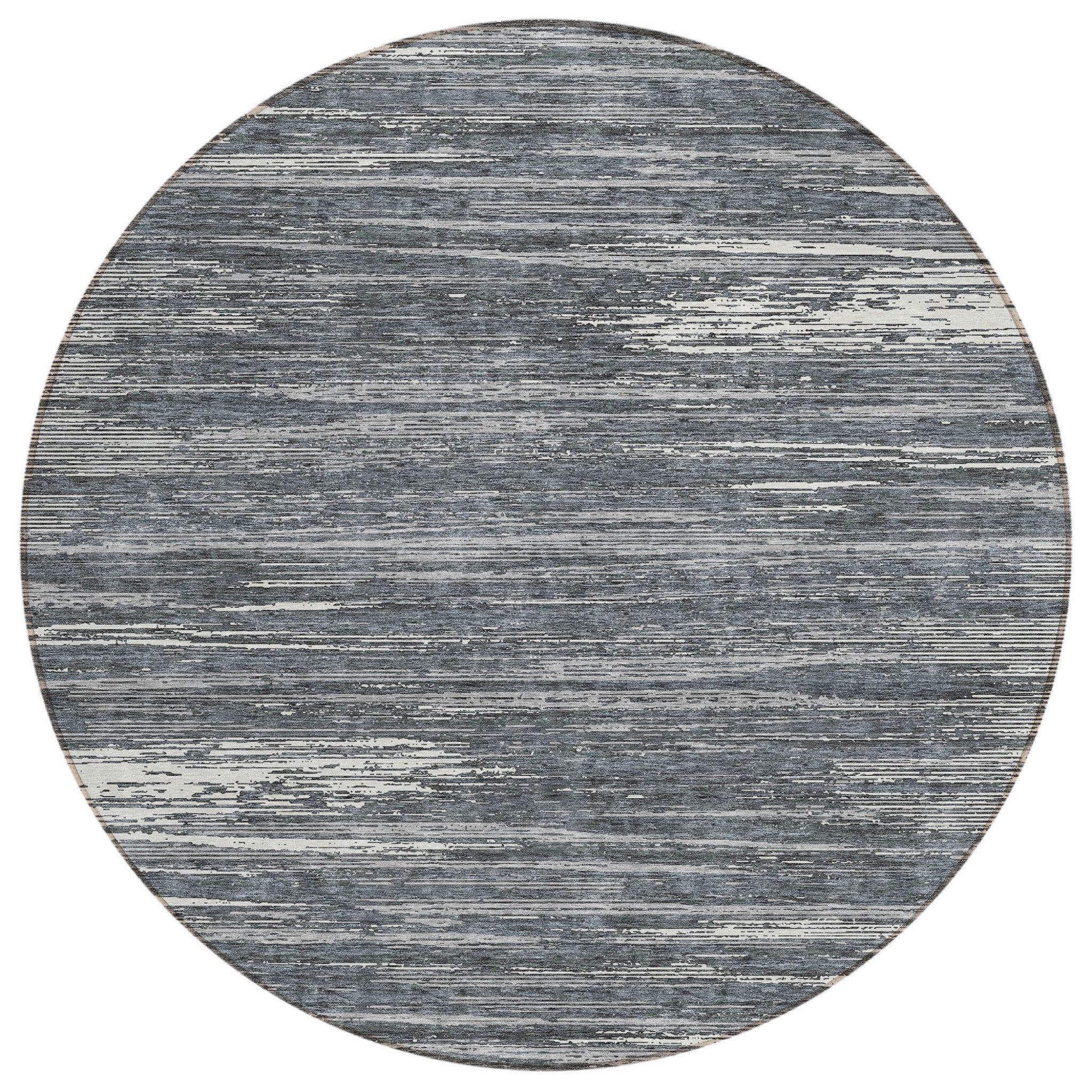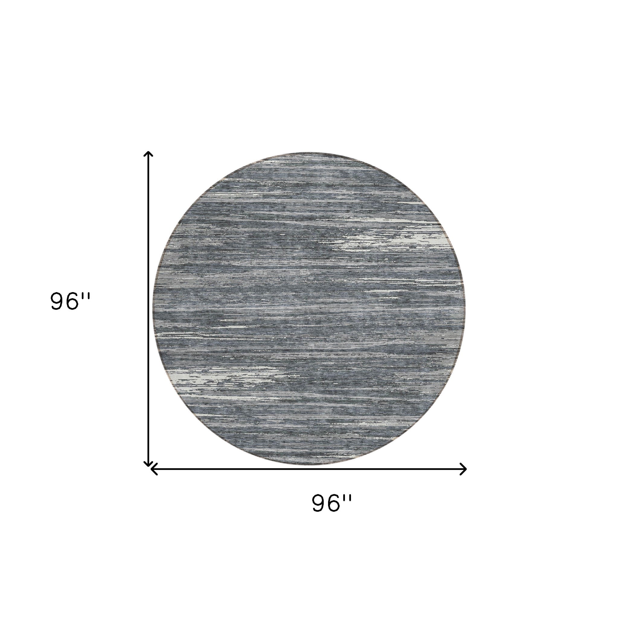 8' Gray And Ivory Round Striped Washable Indoor Outdoor Area Rug