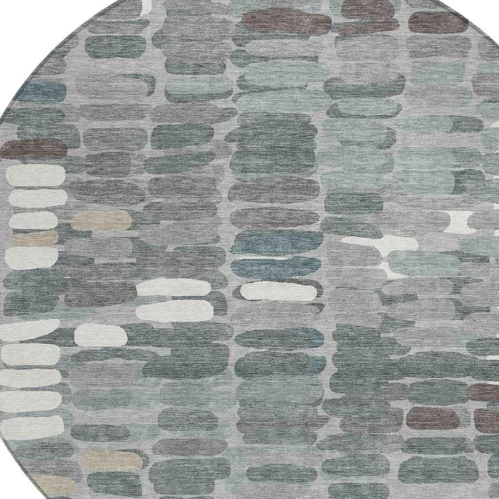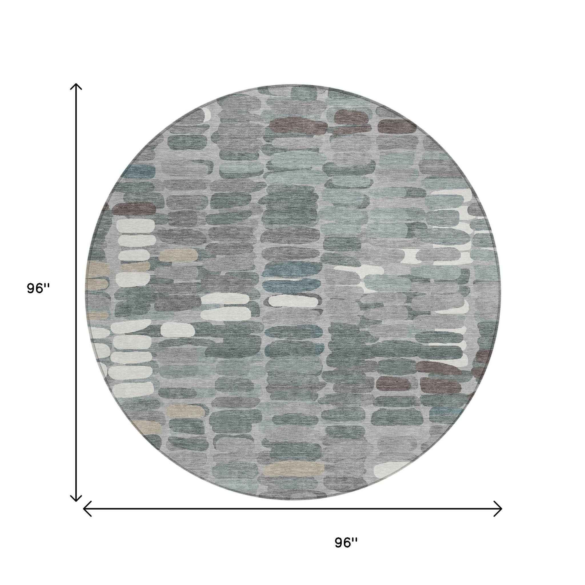 8' Gray Ivory And Pewter Round Abstract Washable Indoor Outdoor Area Rug