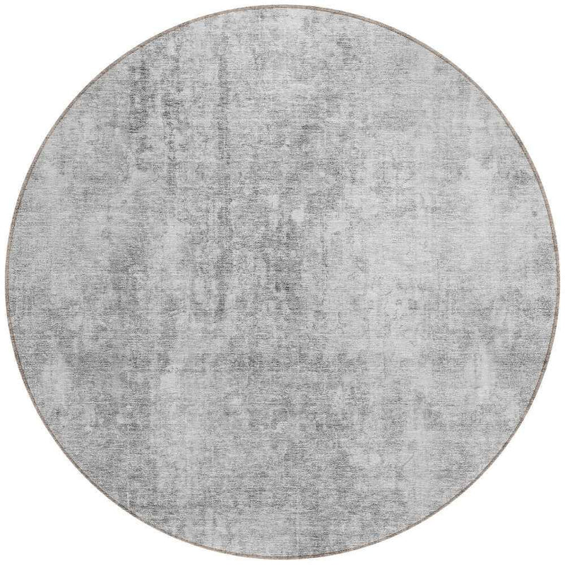 8' Gray Silver And Charcoal Round Abstract Washable Indoor Outdoor Area Rug