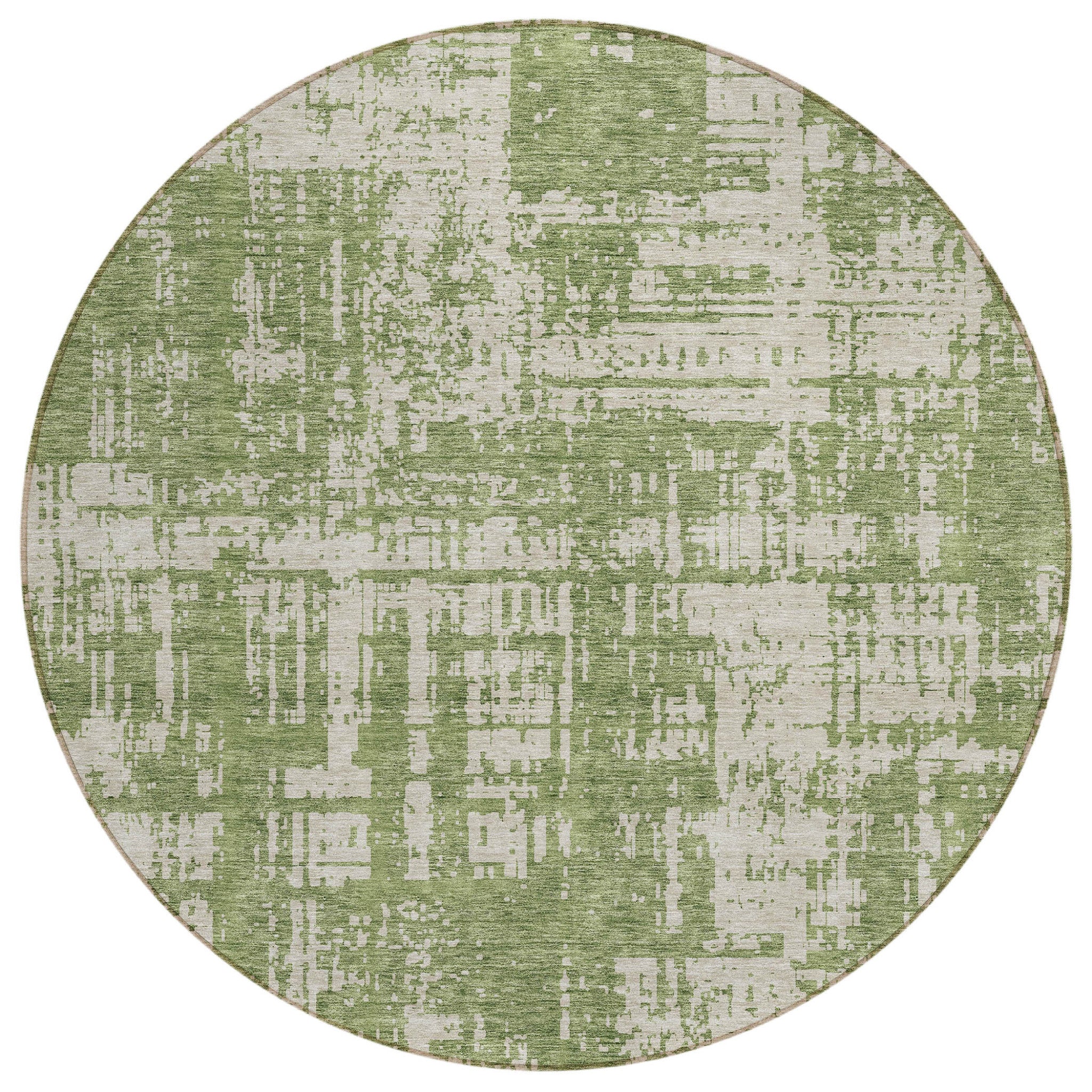 8' Green And Beige Round Abstract Washable Indoor Outdoor Area Rug