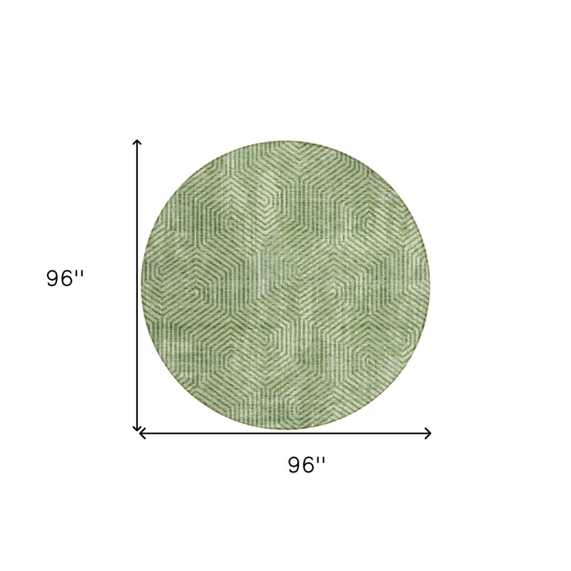 8' Green And Light Green Round Geometric Washable Indoor Outdoor Area Rug