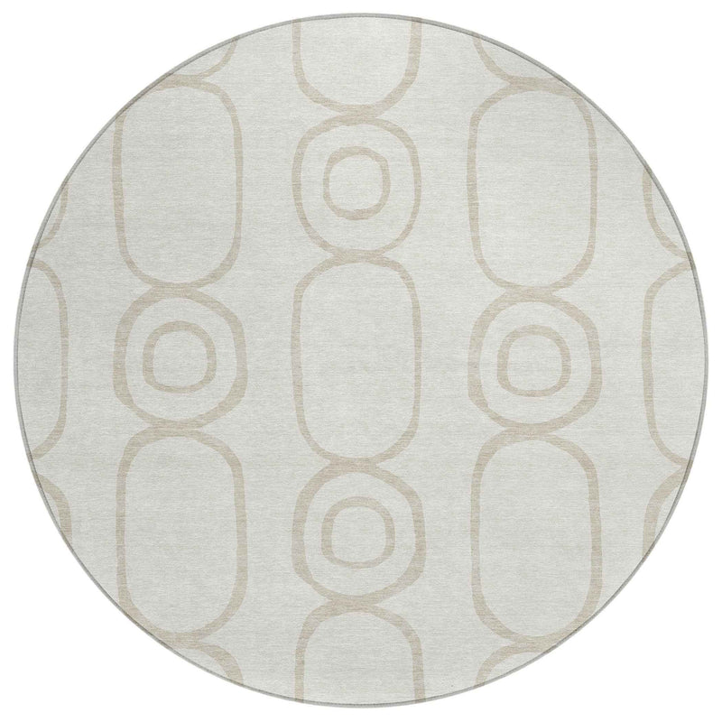 8' Ivory And Beige Round Geometric Washable Indoor Outdoor Area Rug