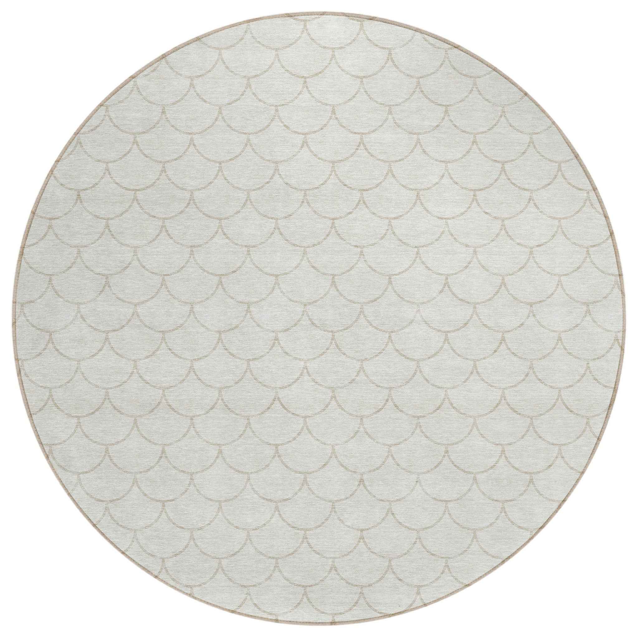 8' Ivory And Beige Round Geometric Washable Indoor Outdoor Area Rug