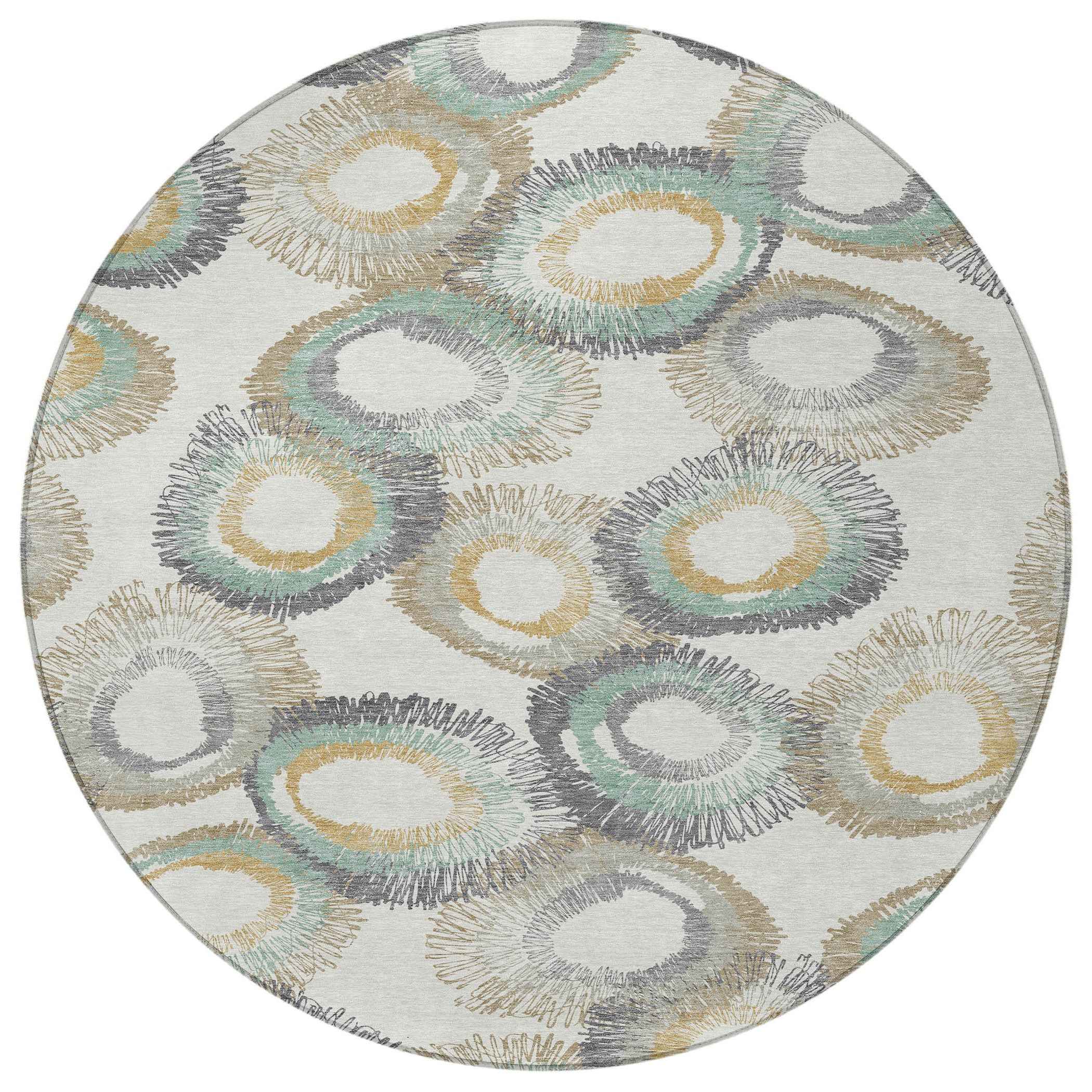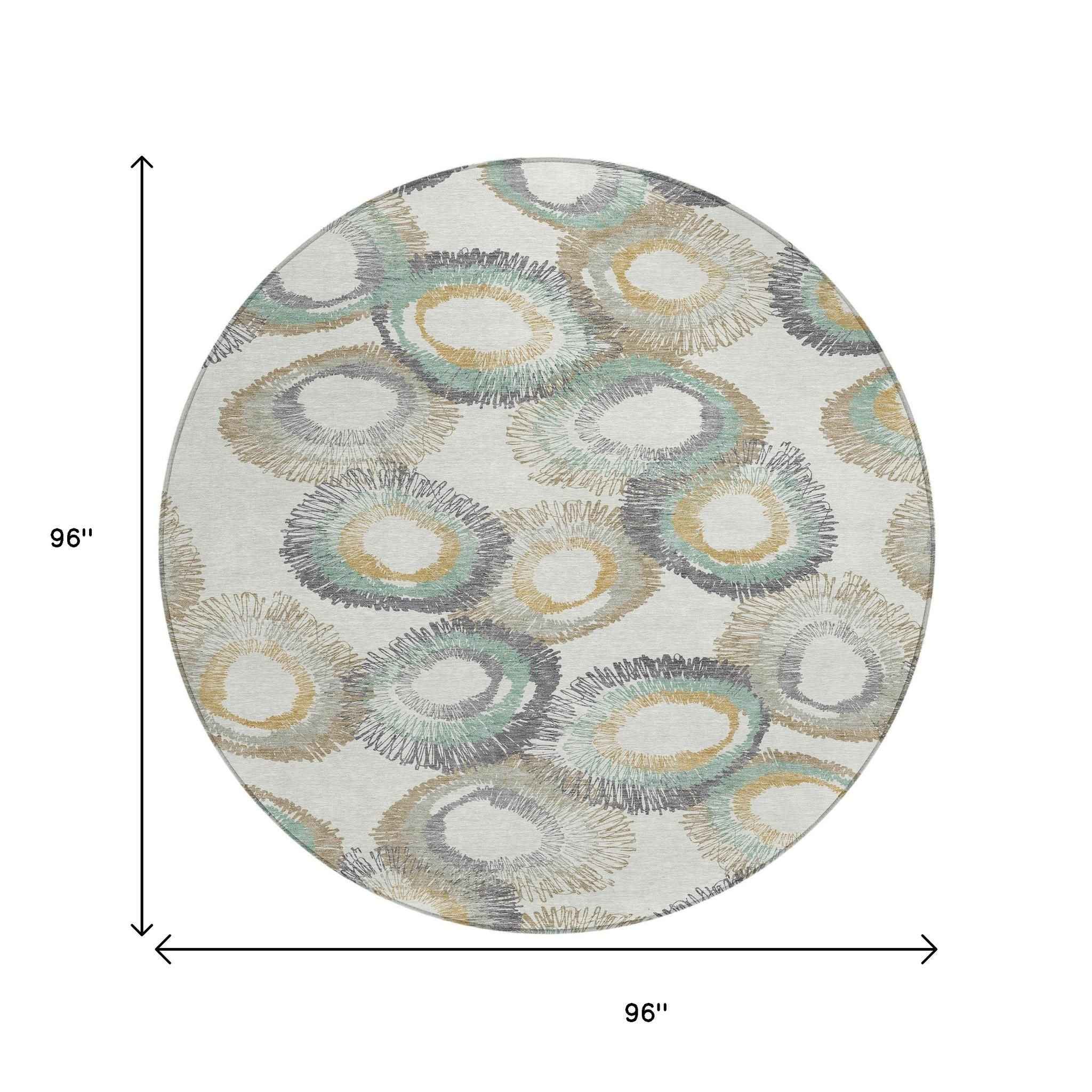 8' Ivory Taupe And Gold Round Geometric Washable Indoor Outdoor Area Rug