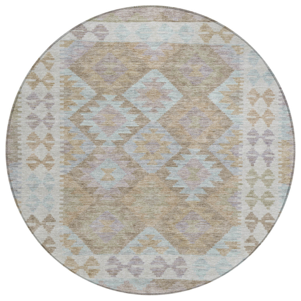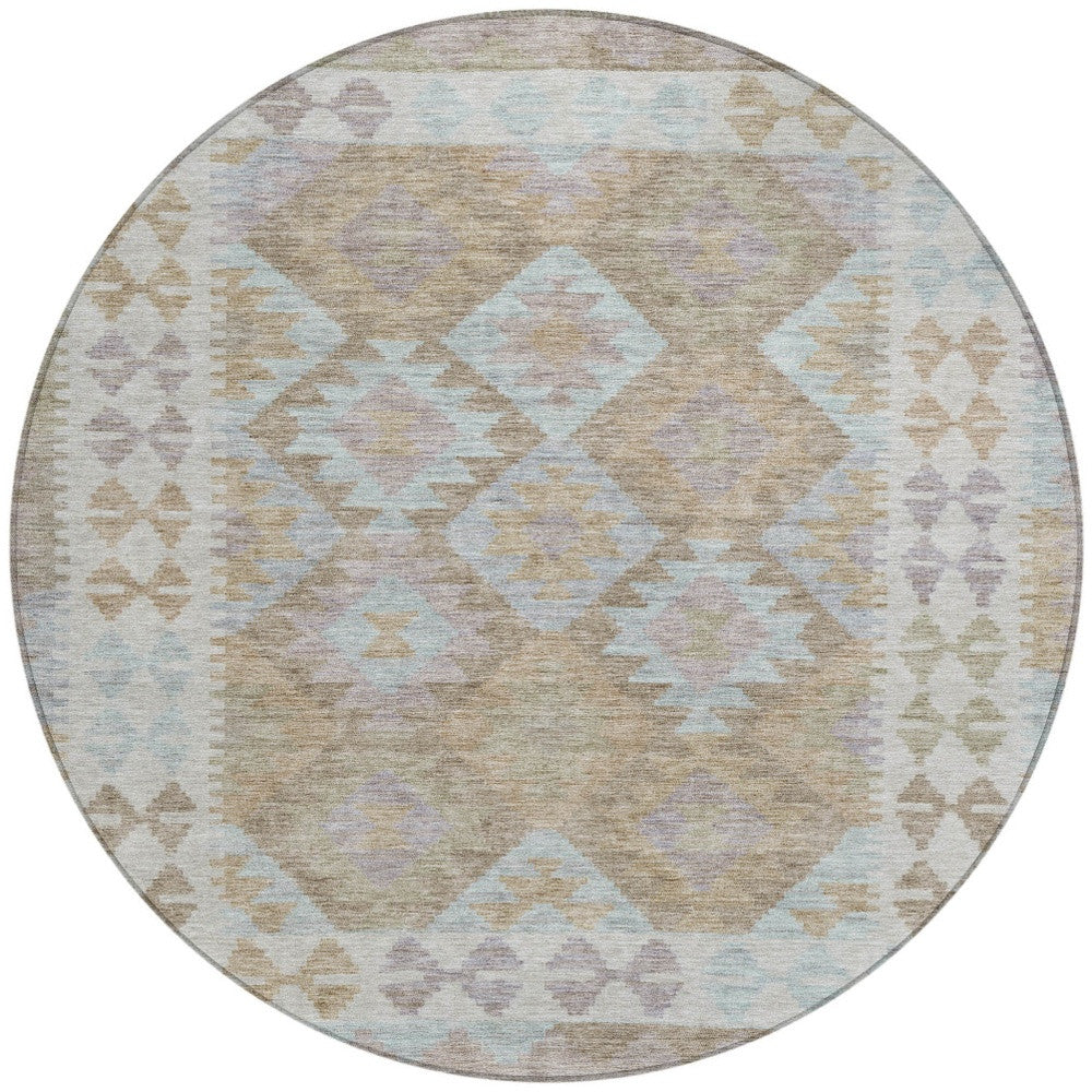8' Khaki Ivory And Gray Round Tribal Washable Indoor Outdoor Area Rug