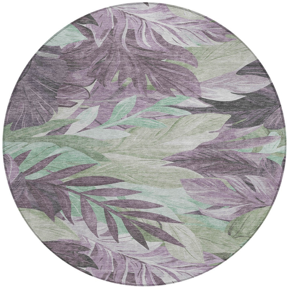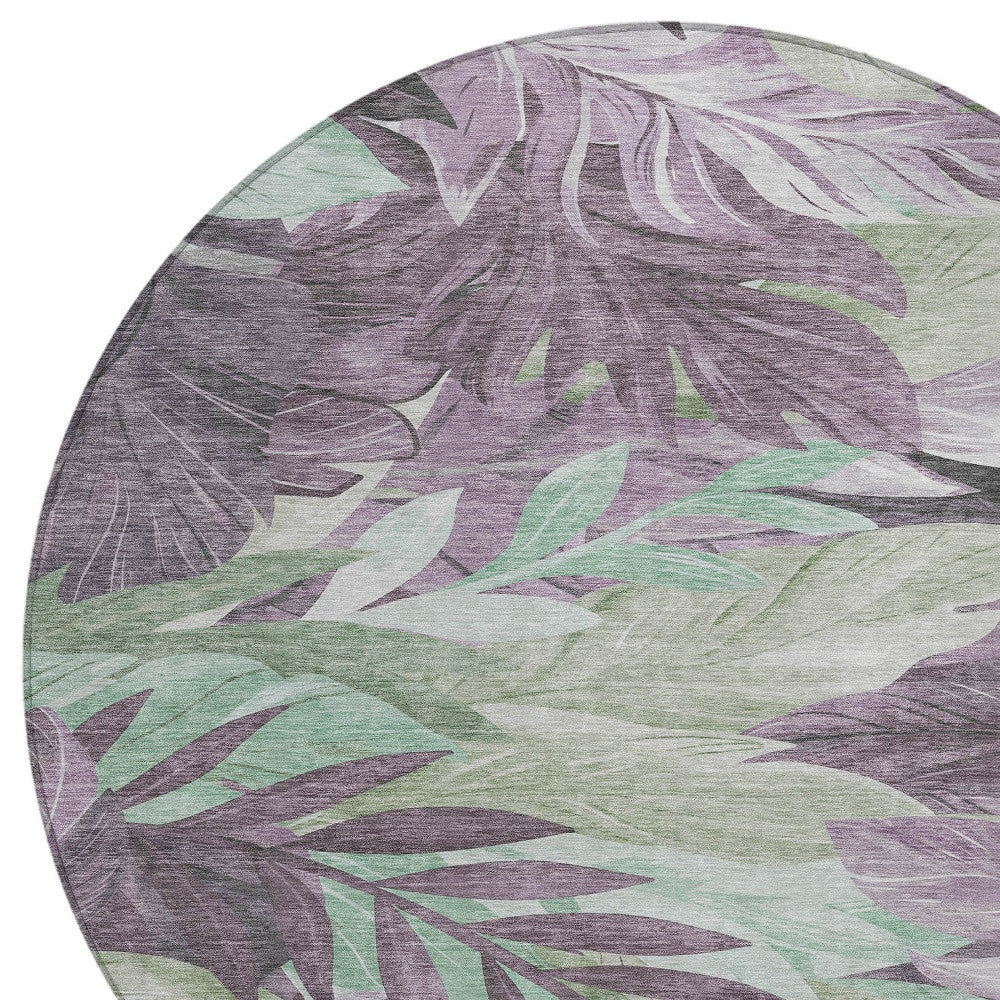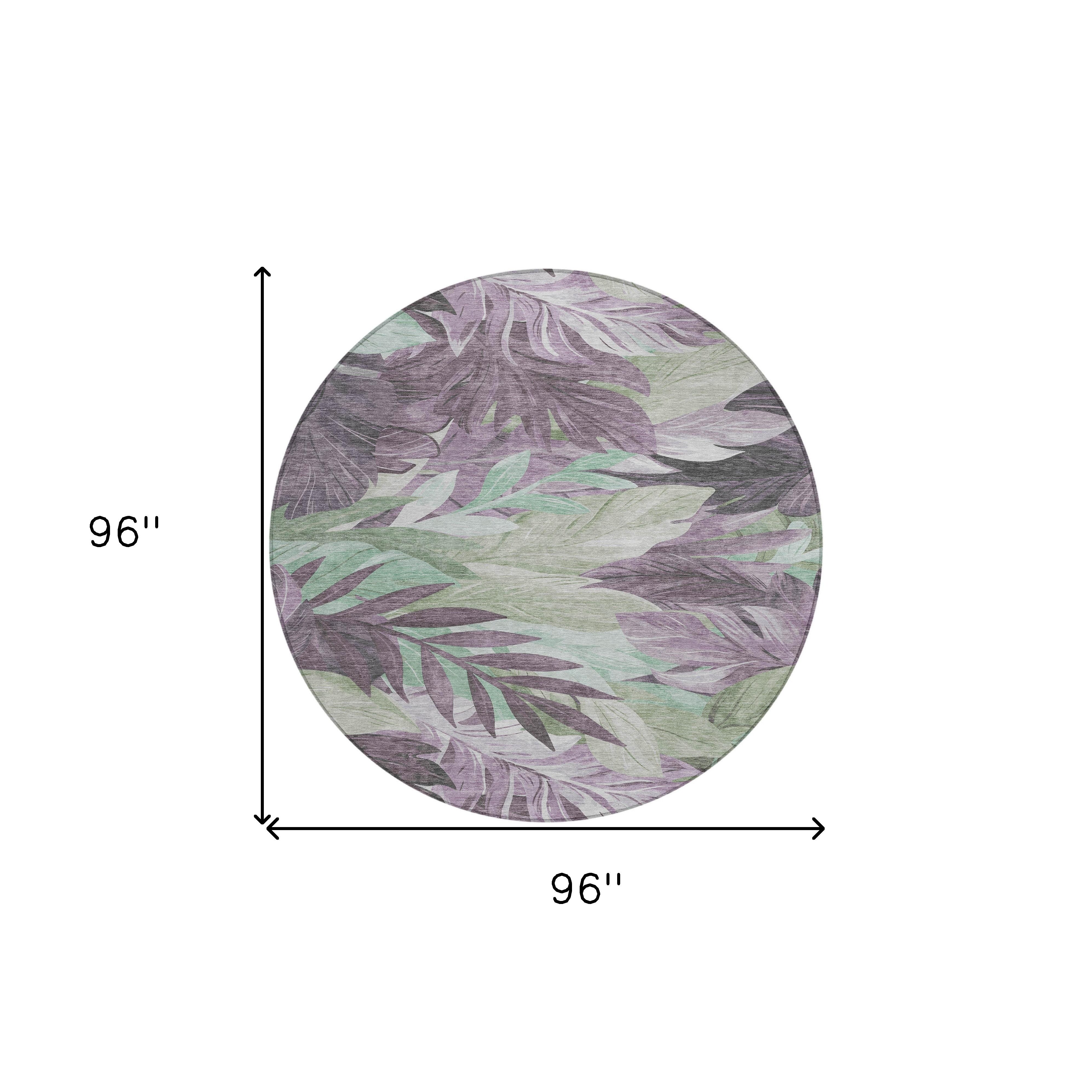 8' Lavender And Lilac Round Floral Washable Indoor Outdoor Area Rug