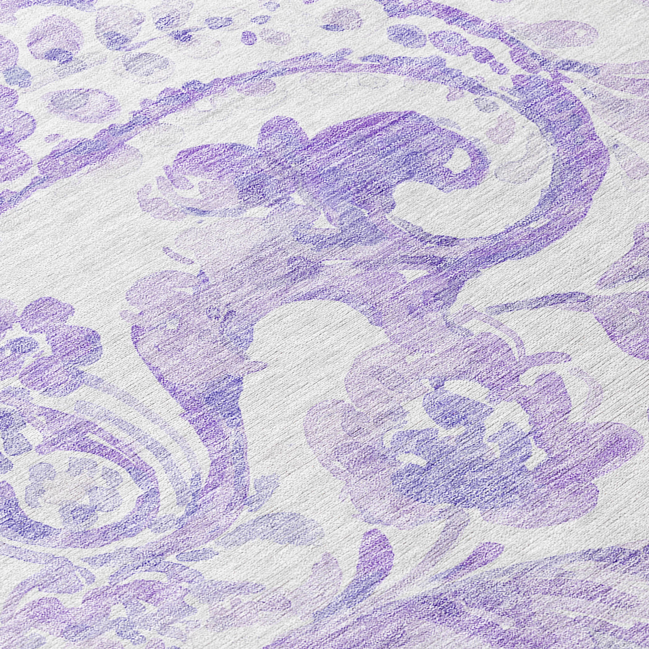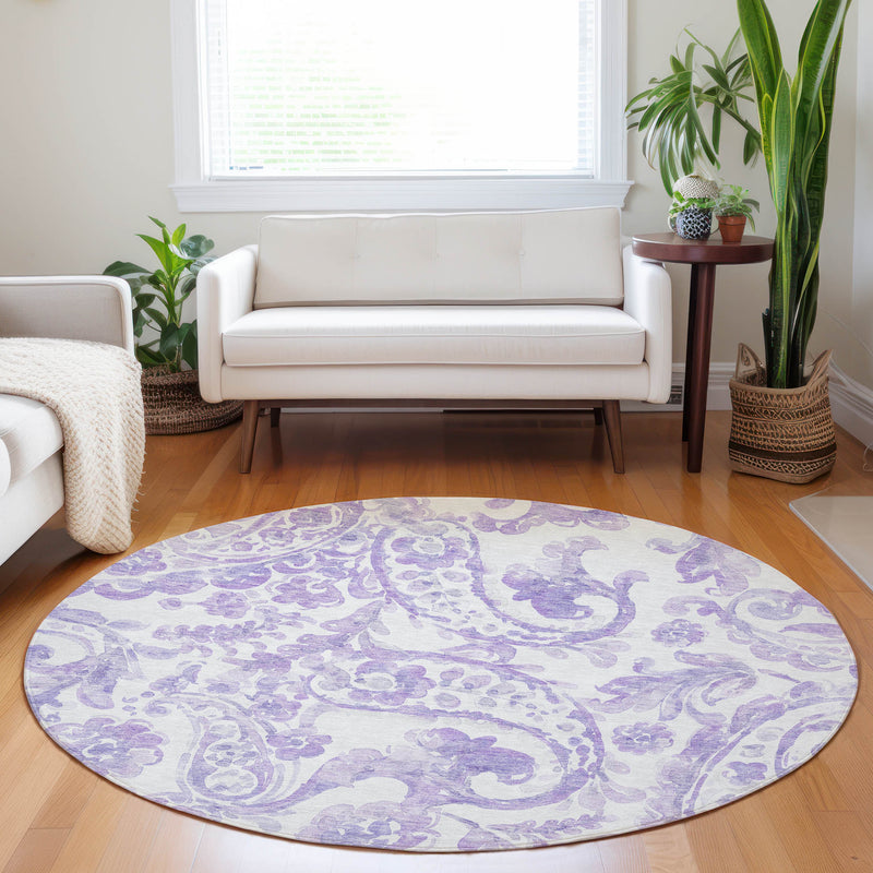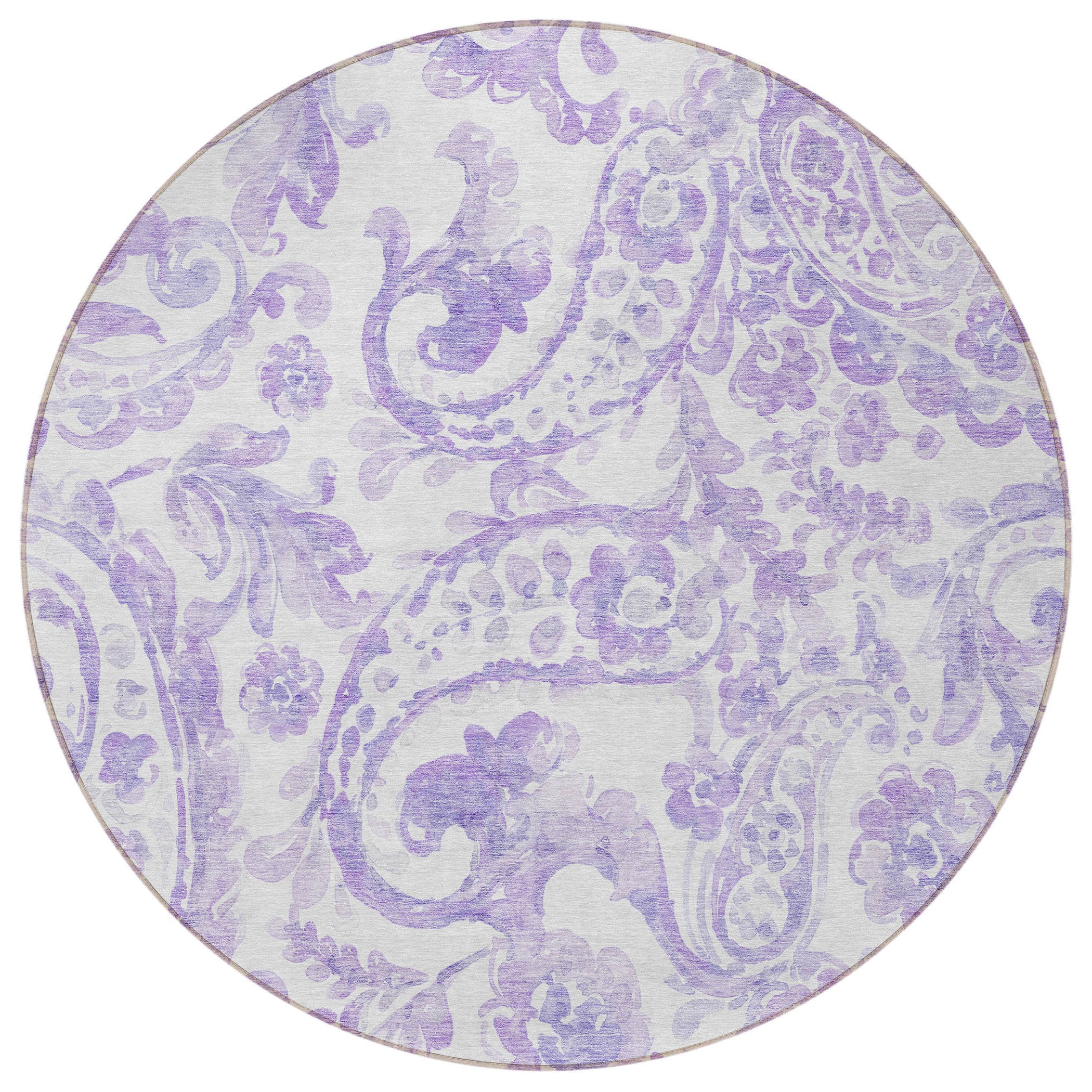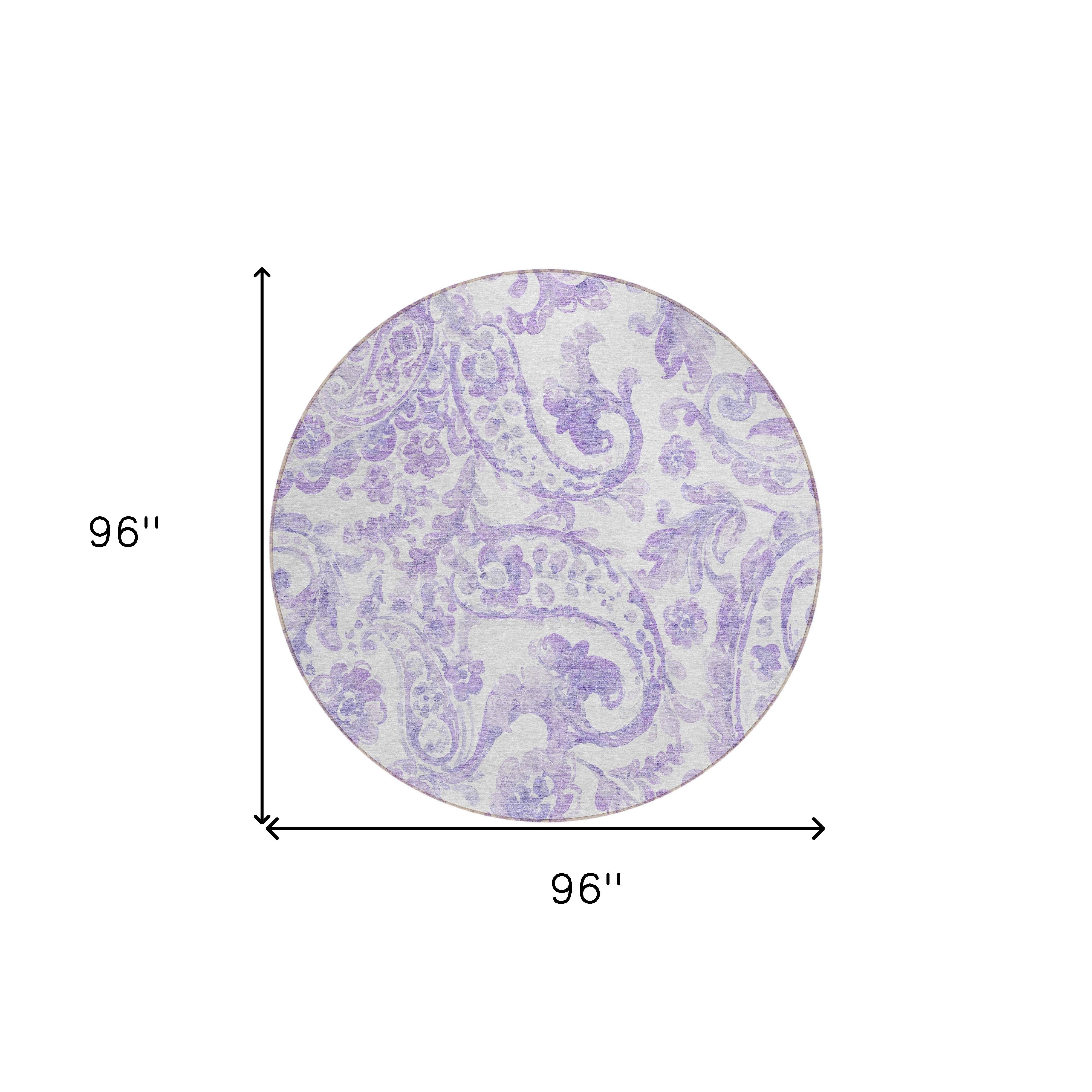 8' Lavender Ivory And Purple Round Paisley Washable Indoor Outdoor Area Rug