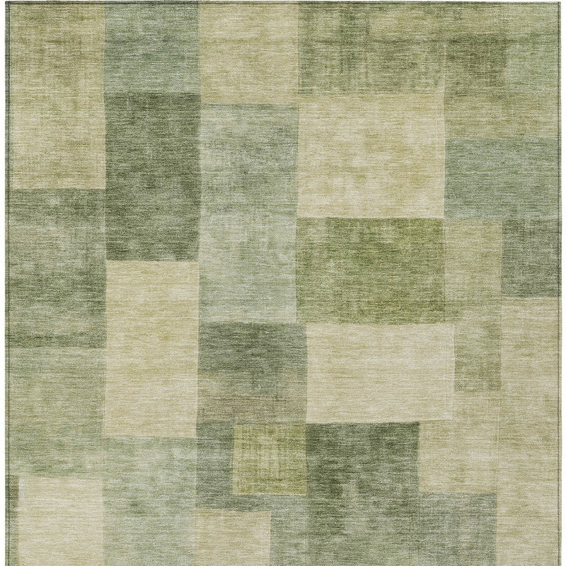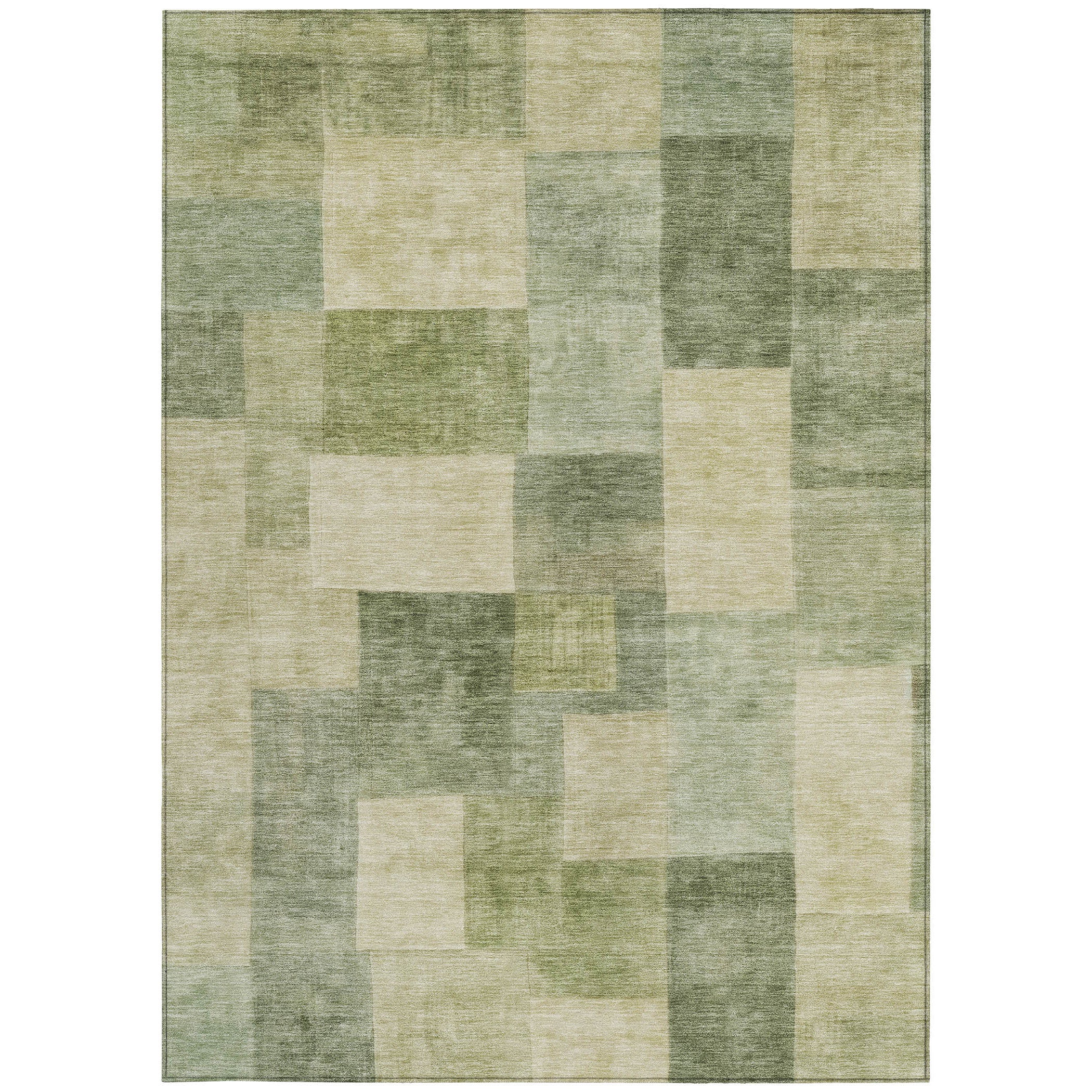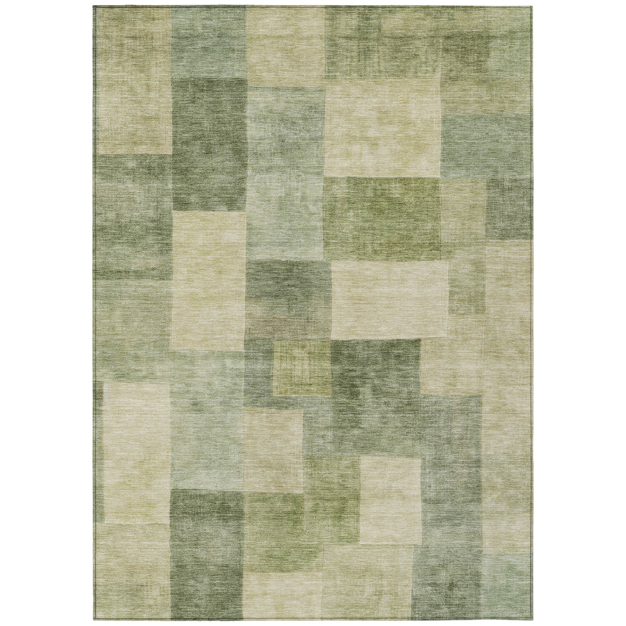 8' X 10' Artichoke Green Geometric Washable Indoor Outdoor Area Rug
