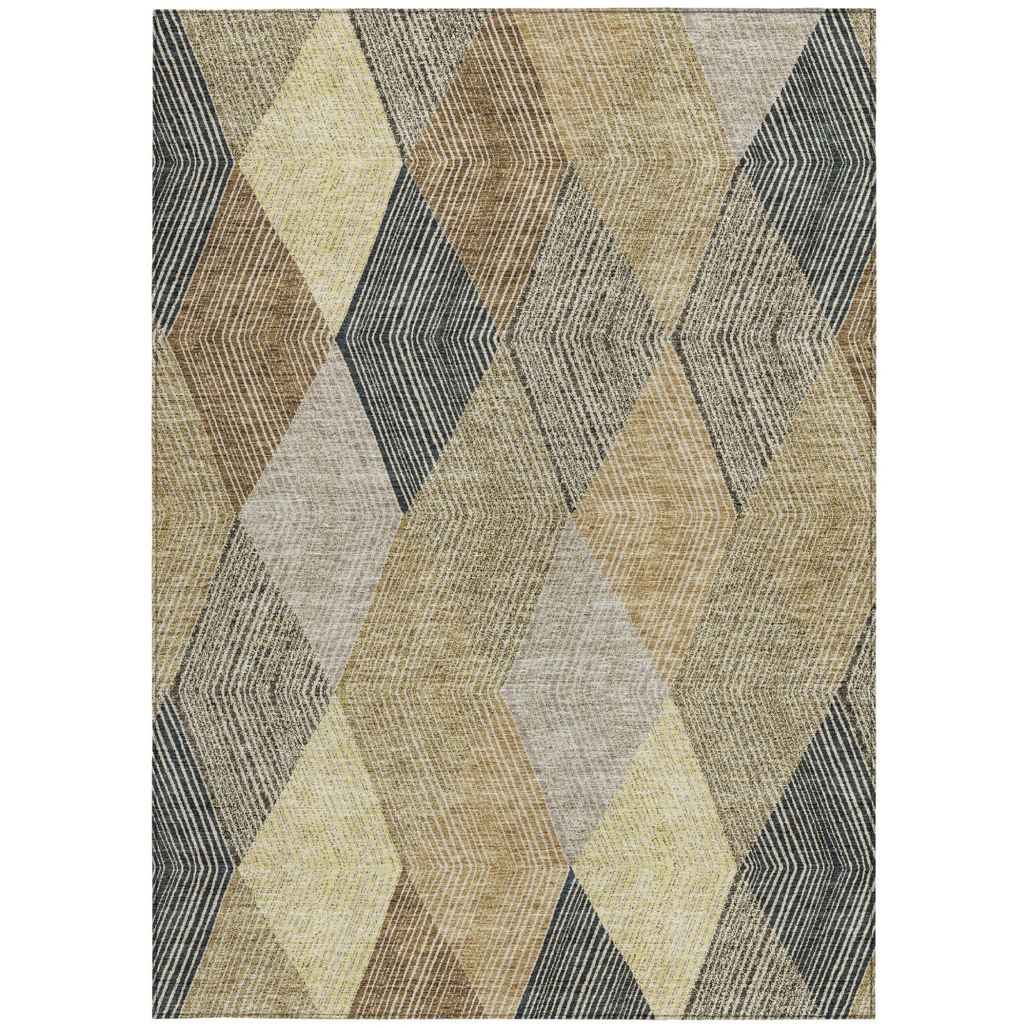 8' X 10' Brown Gold And Taupe Argyle Washable Indoor Outdoor Area Rug