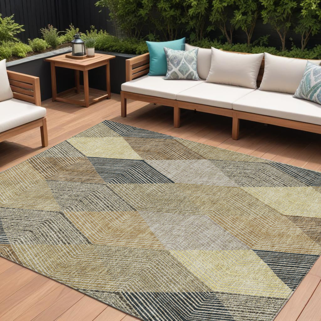 This 8-foot x 10-foot brown gold and taupe argyle washable indoor outdoor area rug, is a great way to add warmth to a room. This rectangle shaped rug features a argyle design that will work well both indoors or out. A classic shape marries with good looking design for your living room, hall, bedroom, porch, patio, or poolside. Ideal for outdoor spaces or high traffic areas with kids and pets, this rug is made from heavy duty polyester that is stain resistant to help repel water, dirt, and stains. Makes a great way to dress up your patio, porch, or poolside, but also works well as a durable and easy to maintain option in the kitchen, family room, or mudroom. 96-inch h x 120-inch w x 0.19-inch d.