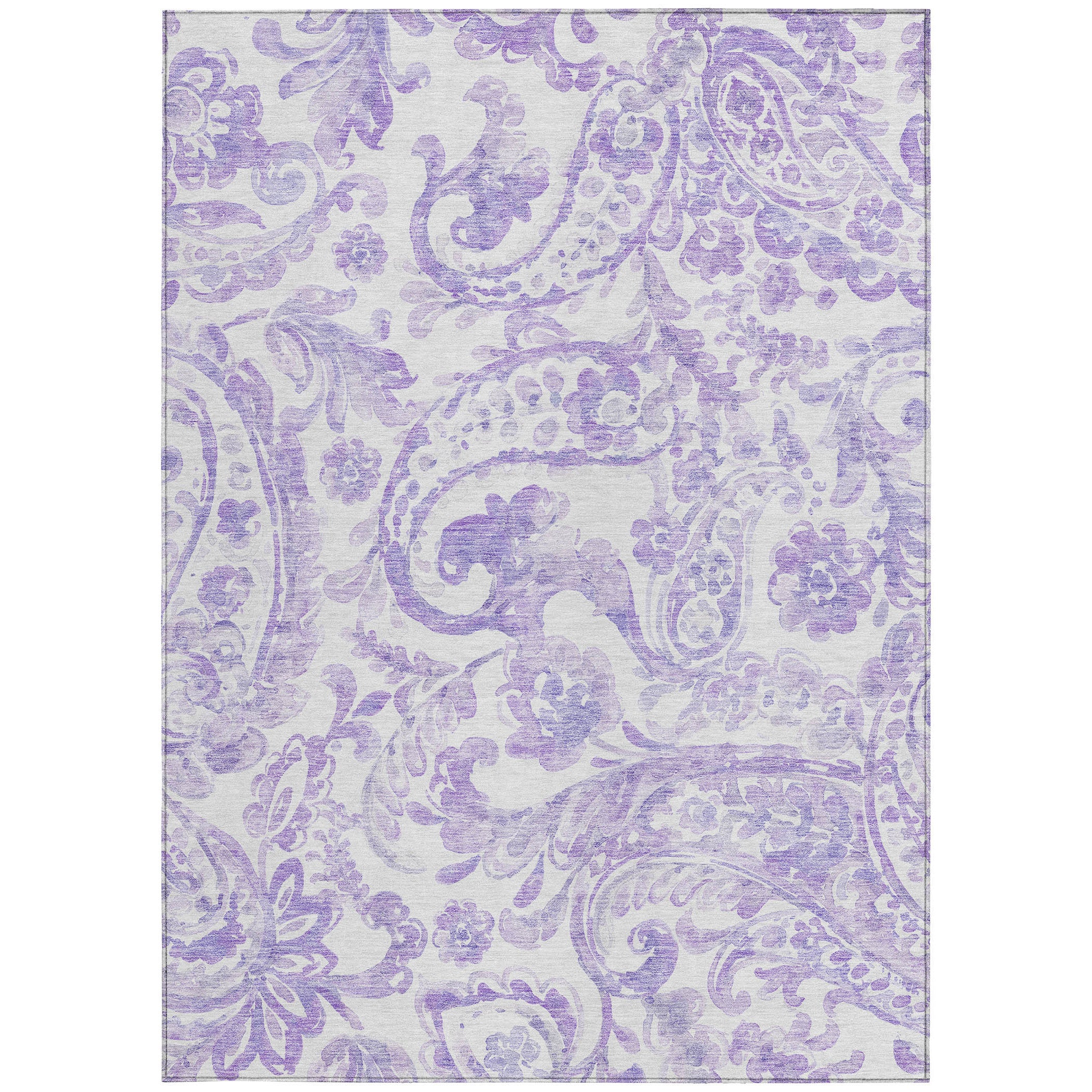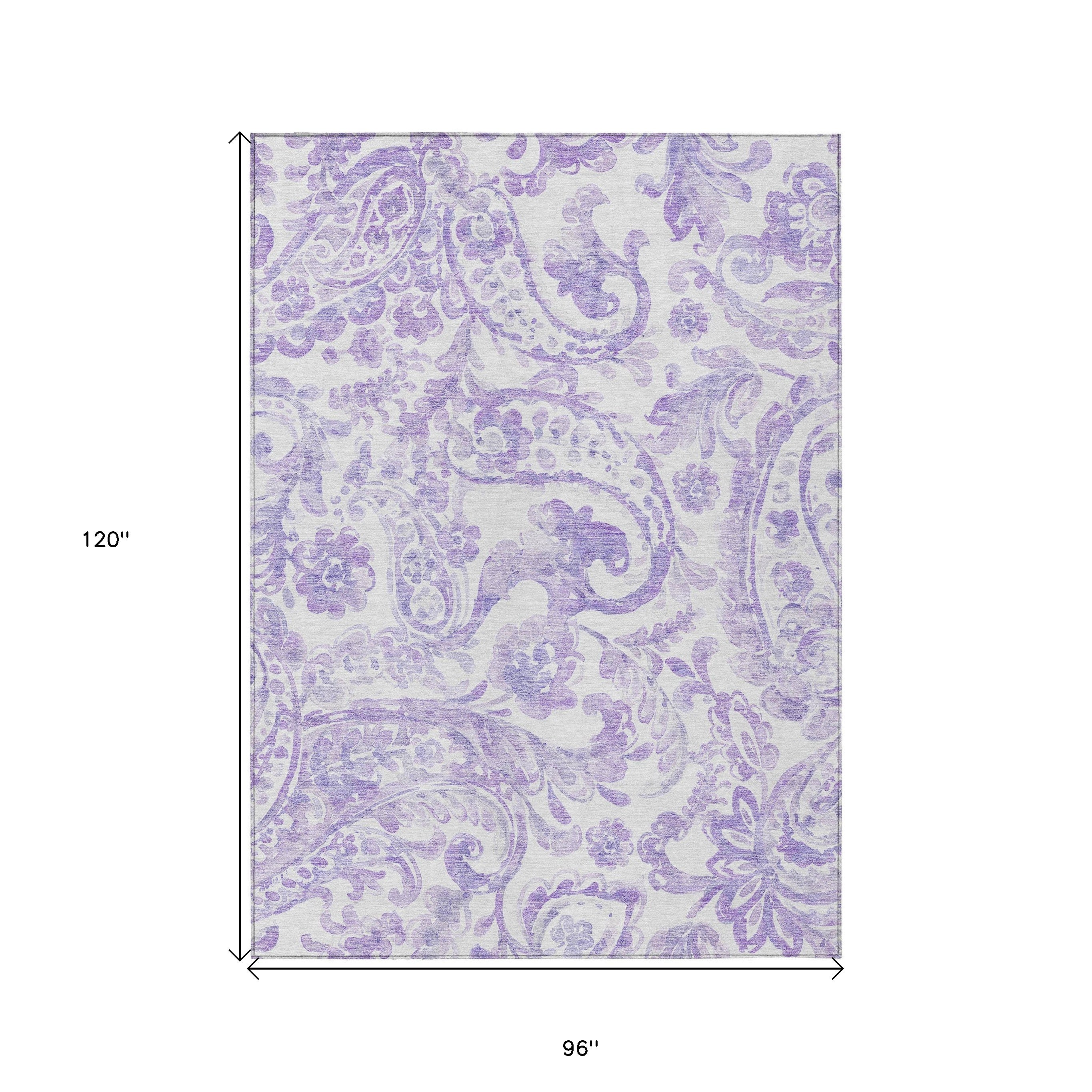 8' X 10' Lavender Ivory And Purple Paisley Washable Indoor Outdoor Area Rug